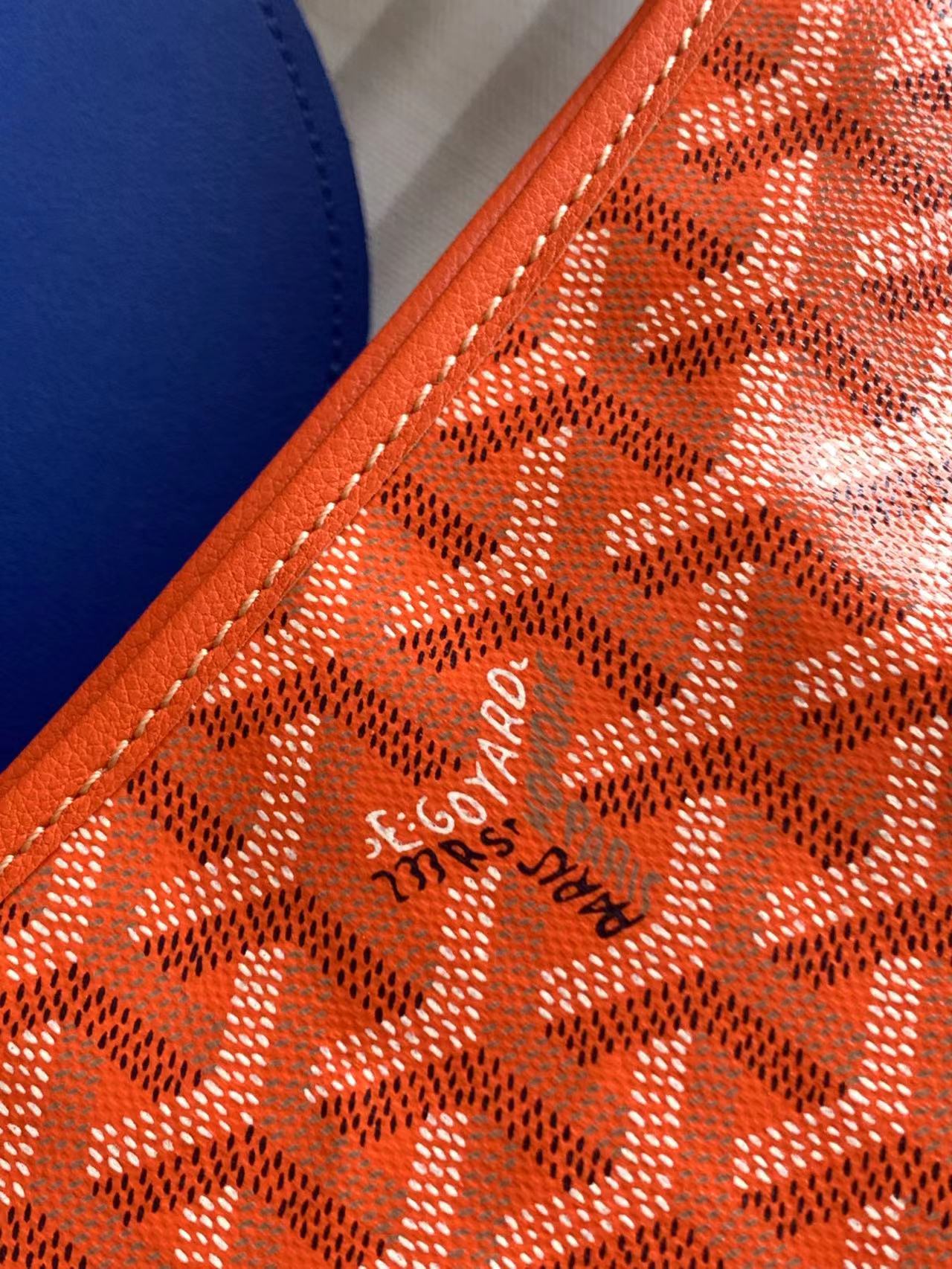 고급스러운 GOYARDINE 캔버스와 CHEVROCHES 소가죽으로 제작되어 내구성이 뛰어나며, 내부는 린넨과 면으로 마감되어 있습니다.