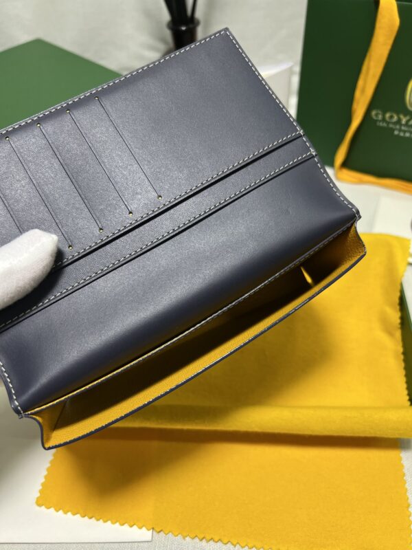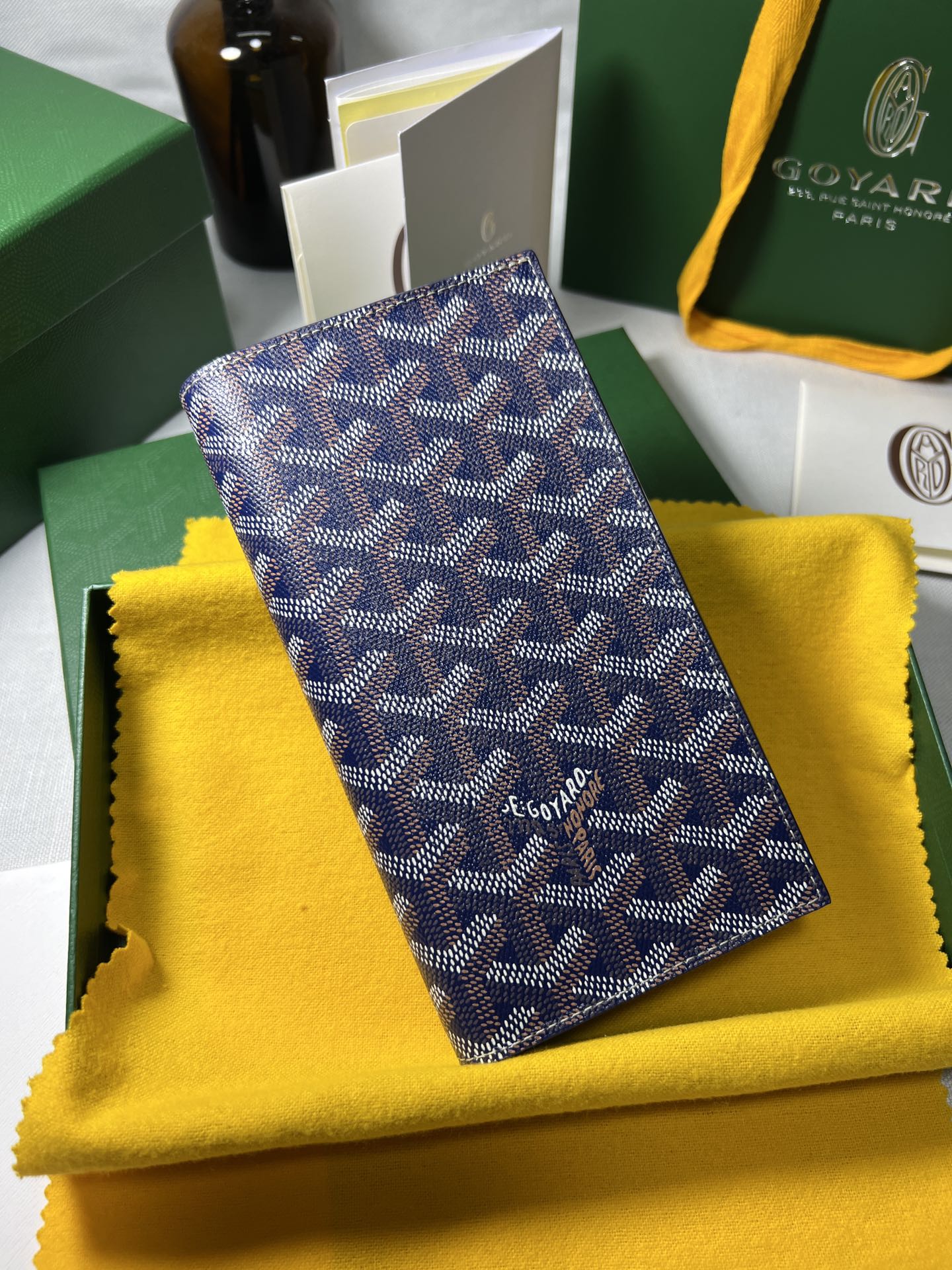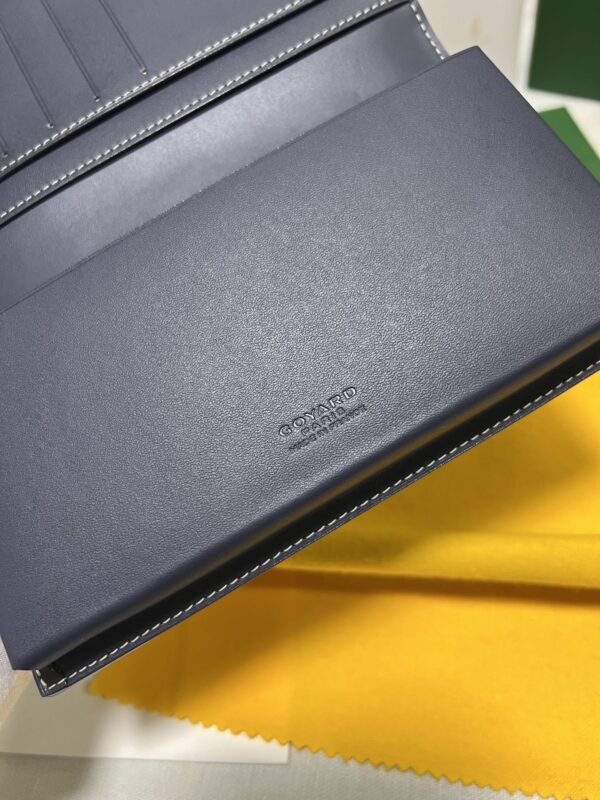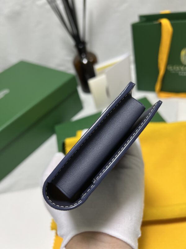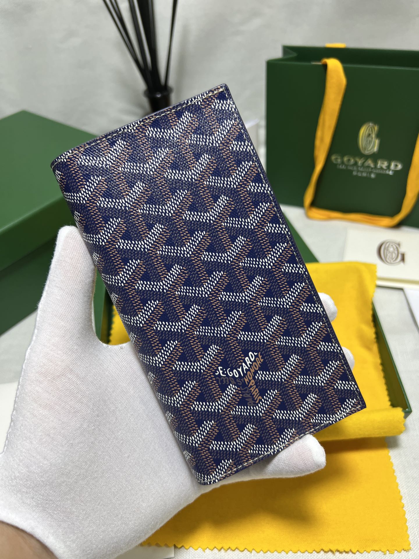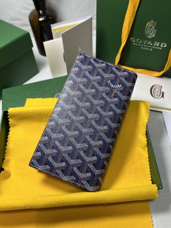 고야드의 롱 핸드폰 지갑은 작고 정교한 디자인으로, 마치 하나의 예술 작품과 같습니다. 브랜드의 우아함과 고급스러움이 잘 드러납니다.