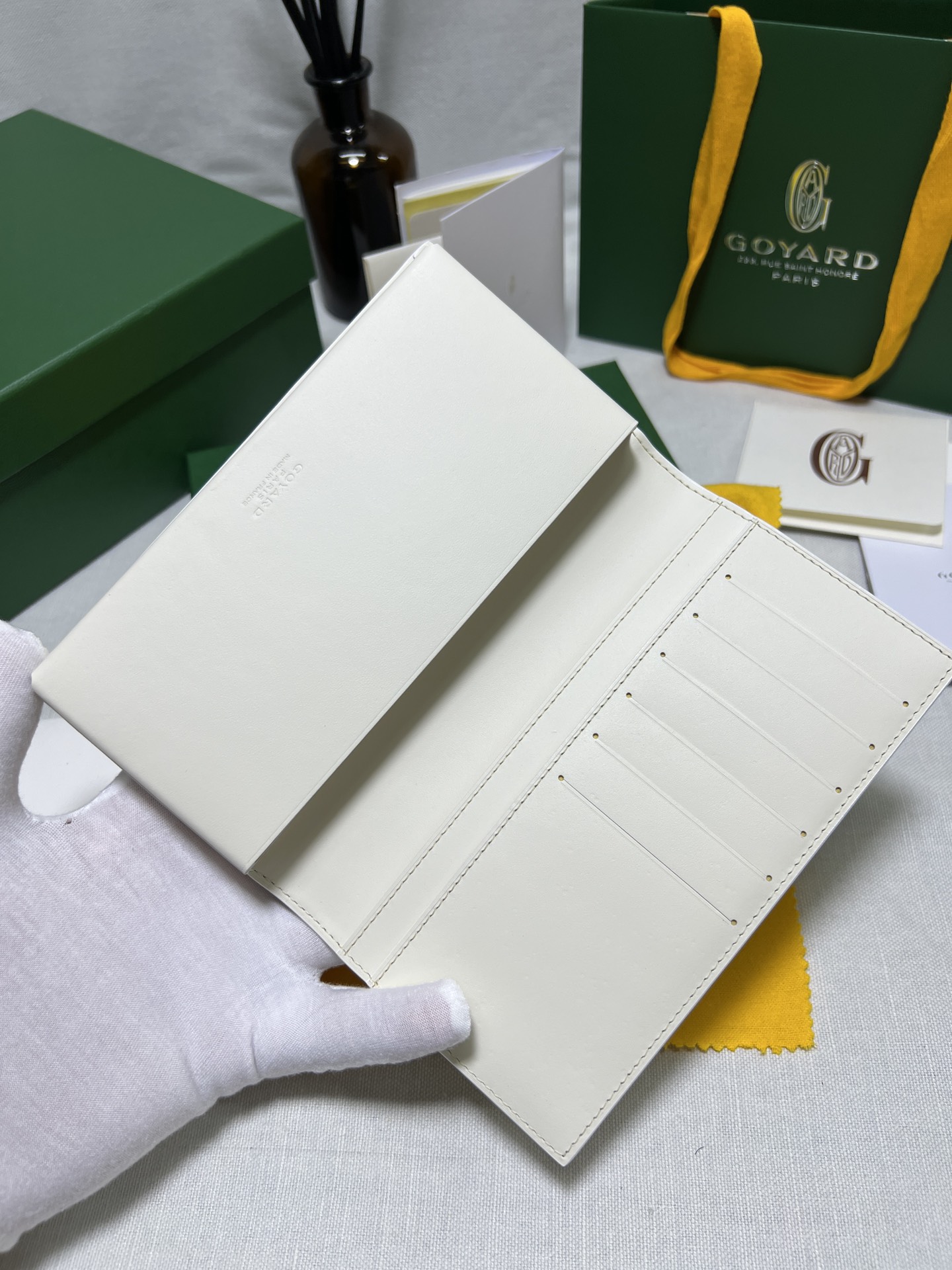 고야드의 롱 핸드폰 지갑은 작고 정교한 디자인으로, 마치 하나의 예술 작품과 같습니다. 브랜드의 우아함과 고귀함을 잘 드러내며, 실용성과 패션을 완벽하게 조화시켰습니다.