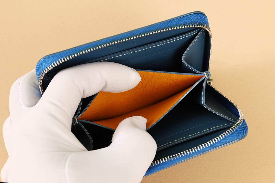 고야드 마티뇽 소형 지갑은 컴팩트한 디자인으로, 전체 지퍼로 안전하게 열고 닫을 수 있습니다.