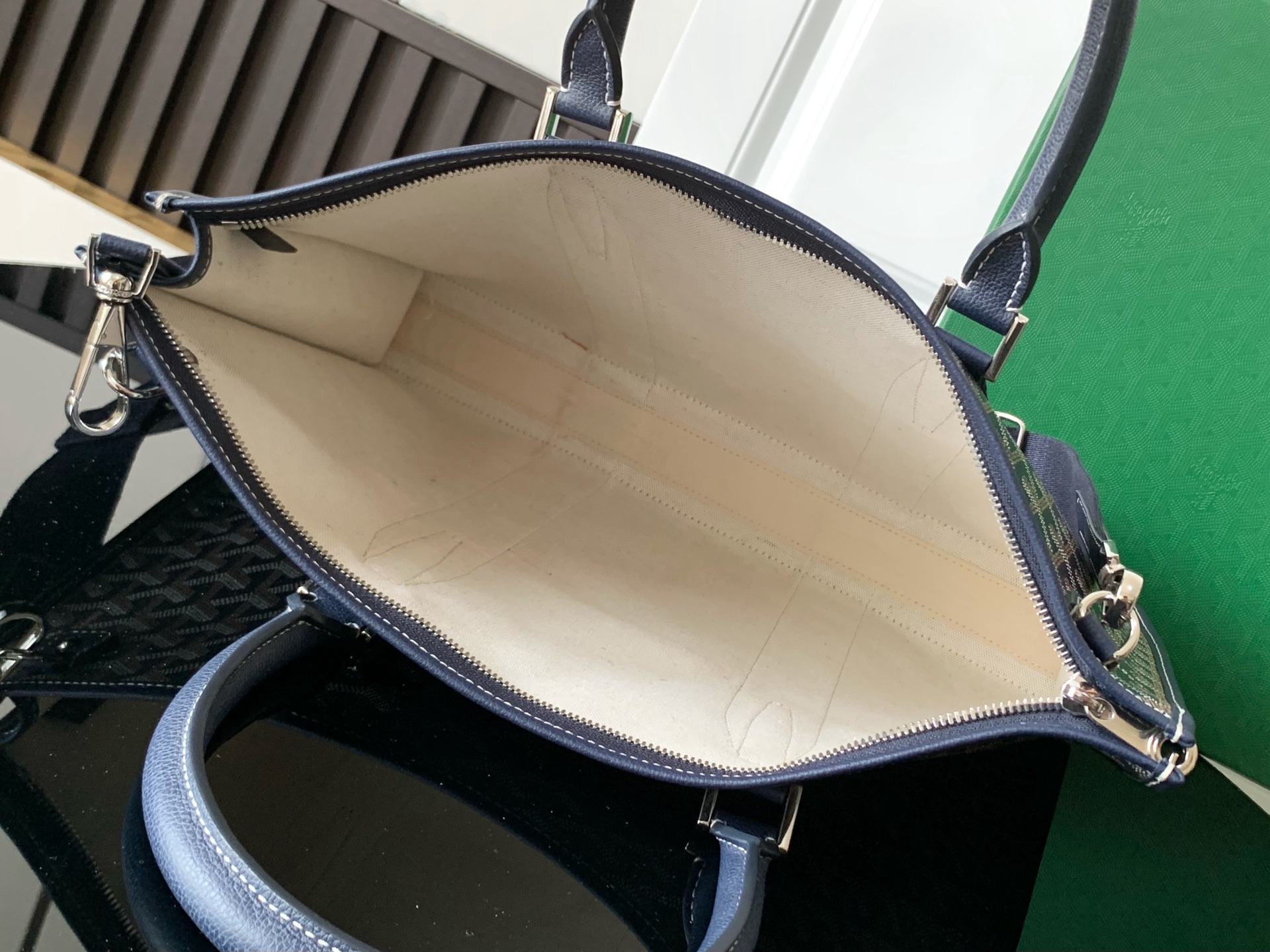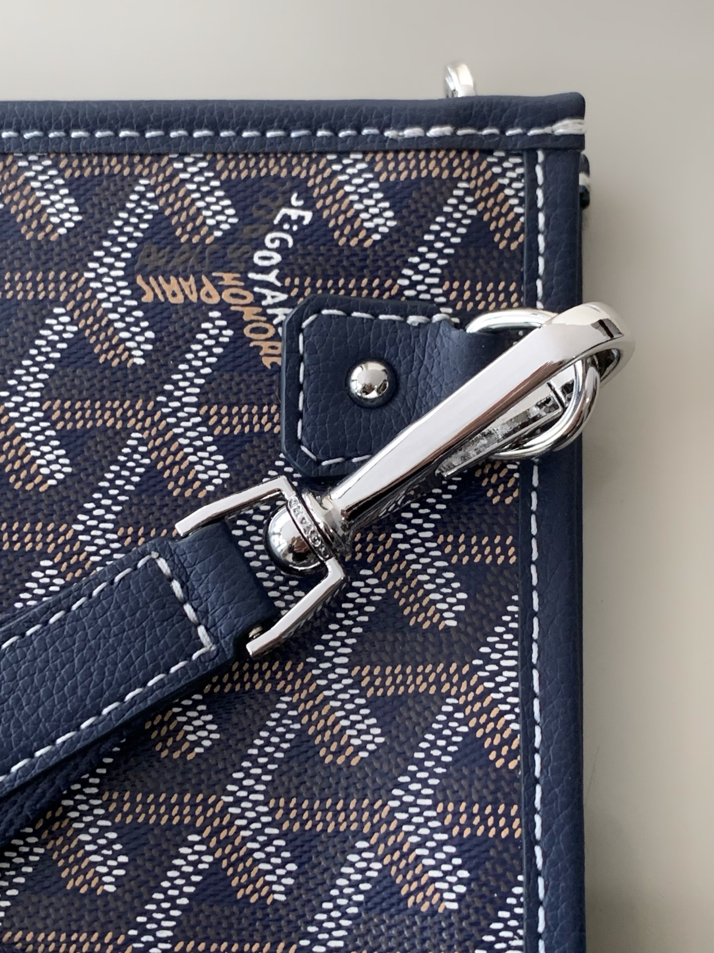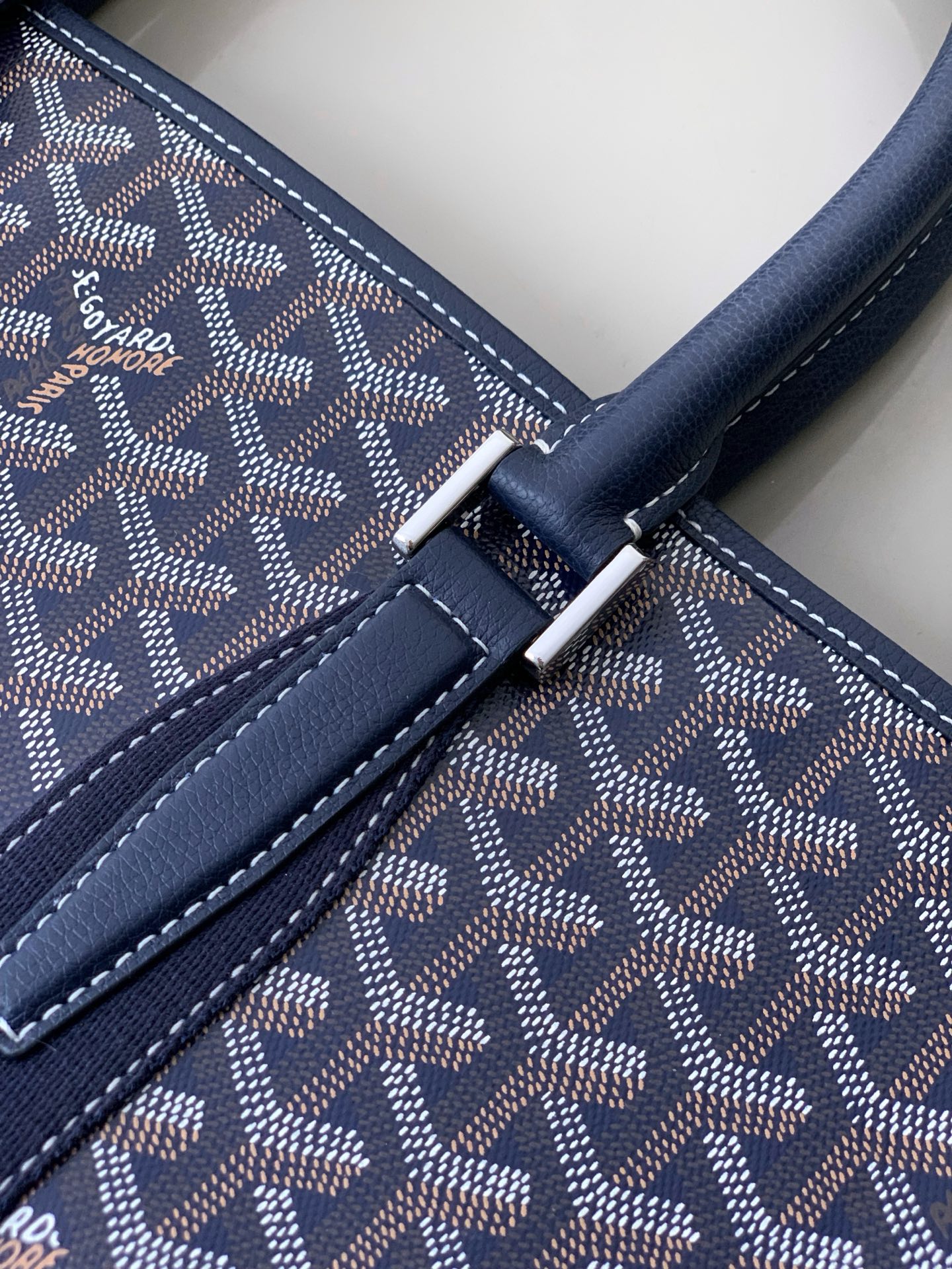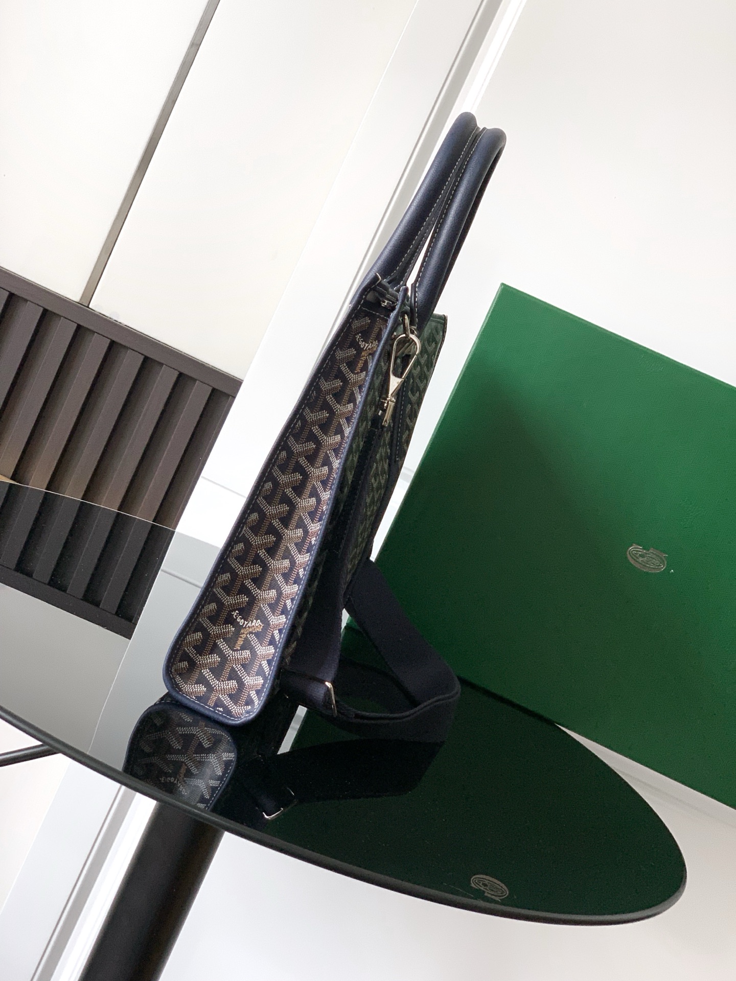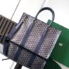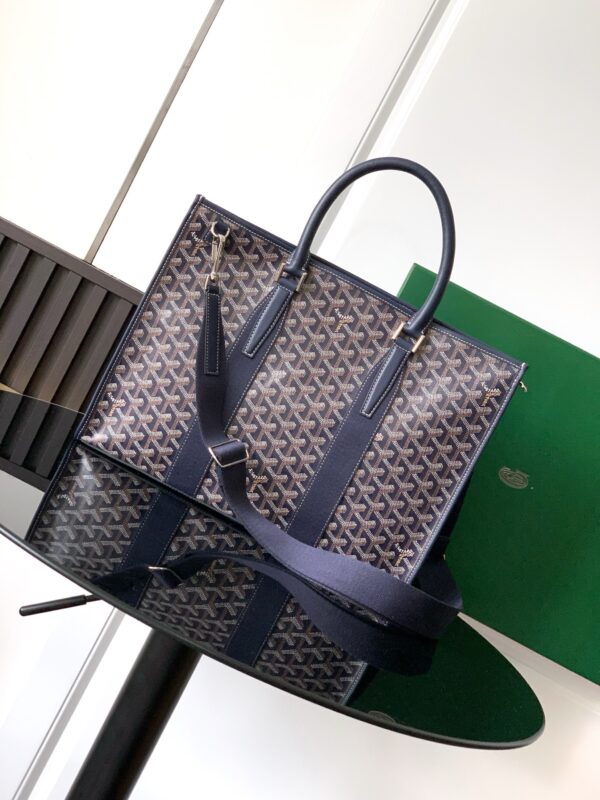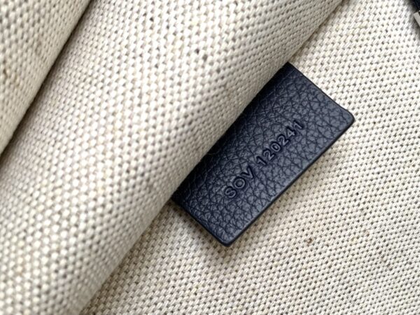 두 개의 원형 가죽 손잡이가 있어 편안한 착용감을 제공하며, 중간 크기의 어깨끈을 추가하여 어깨에 메거나 크로스백으로 착용할 수 있습니다.