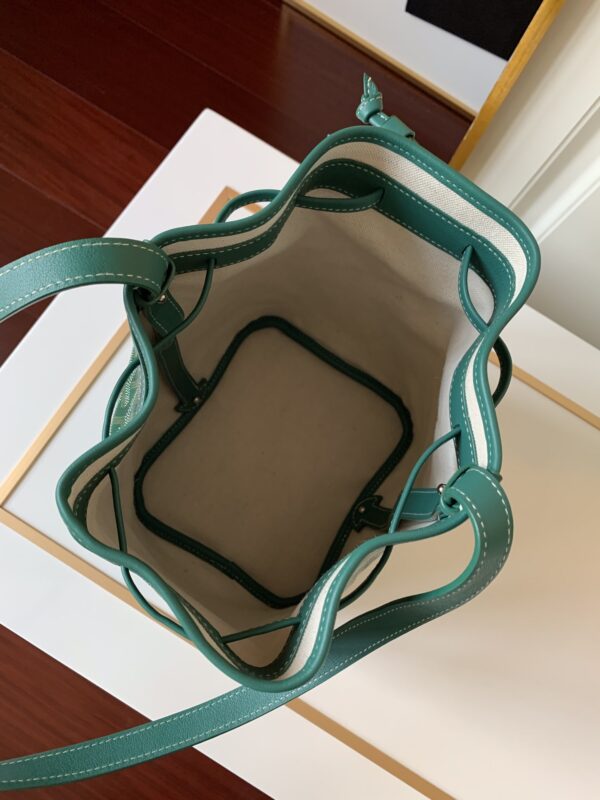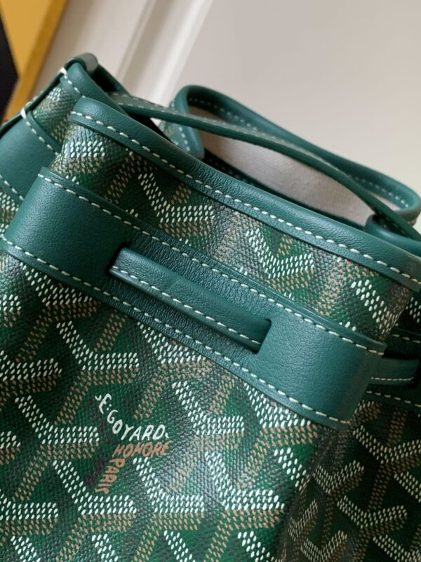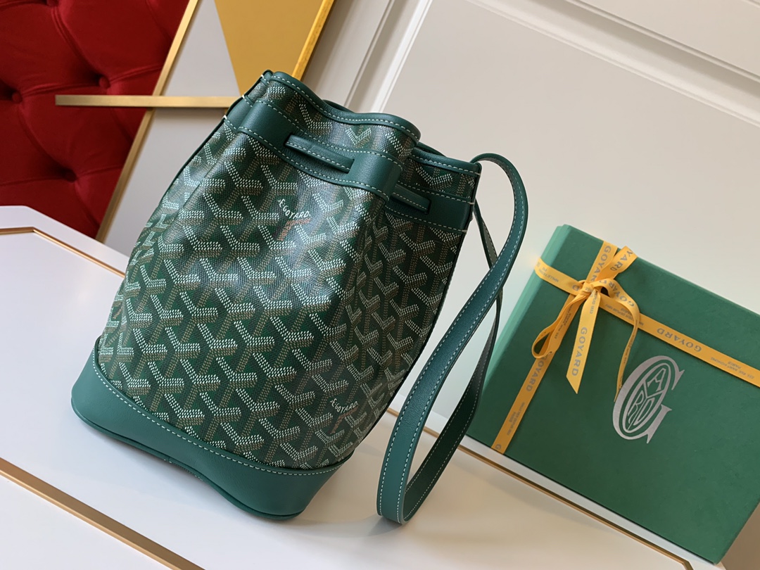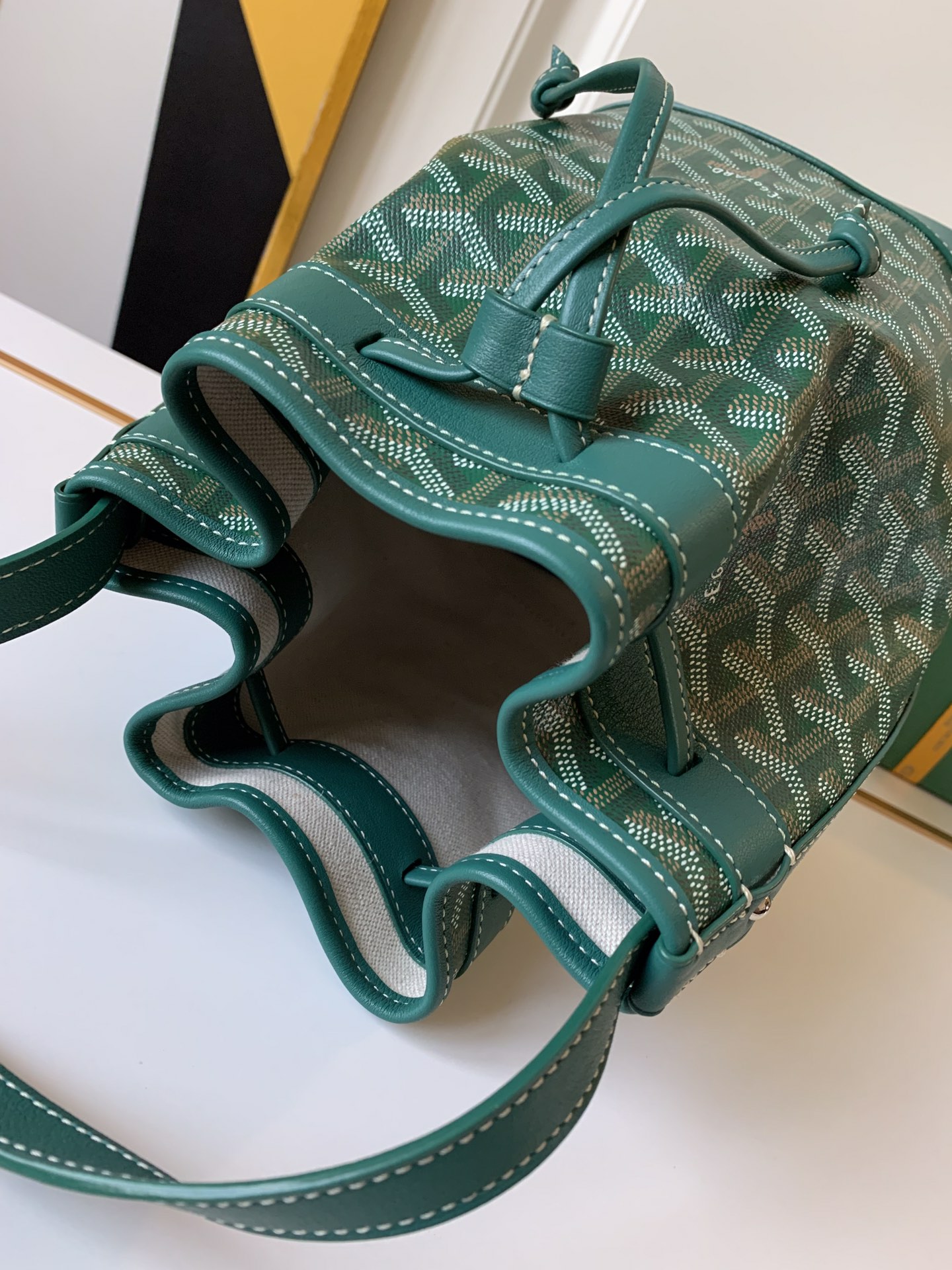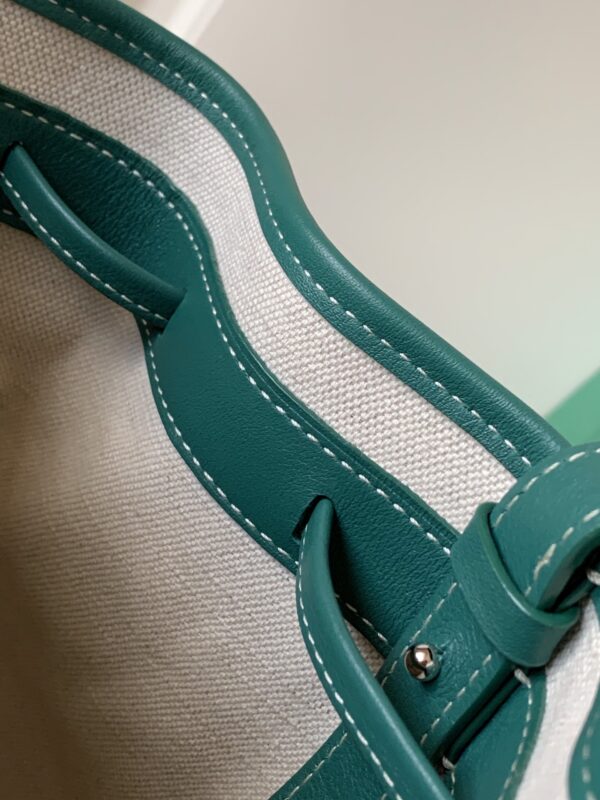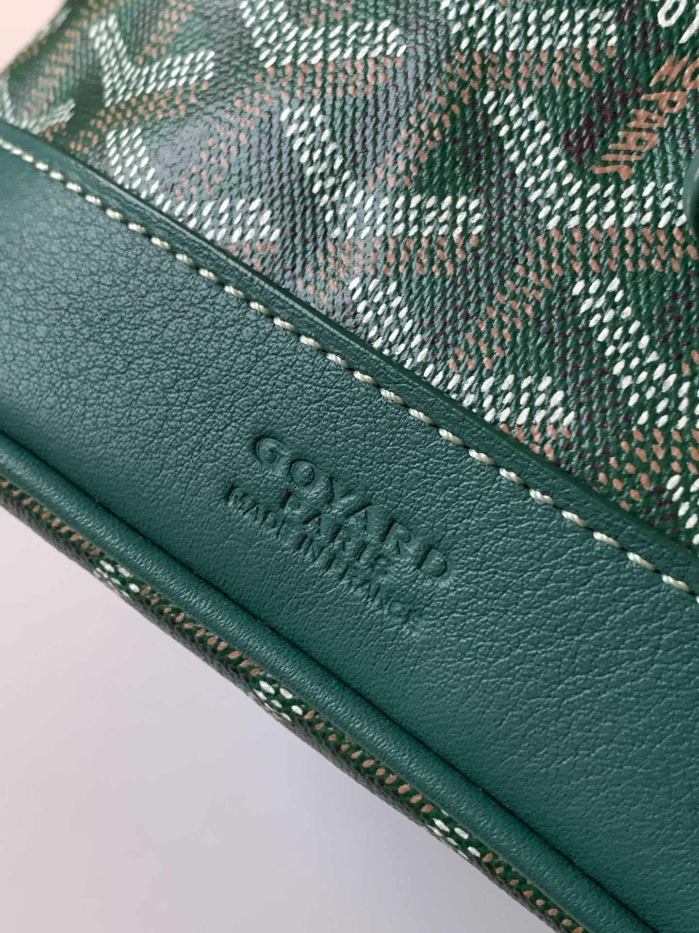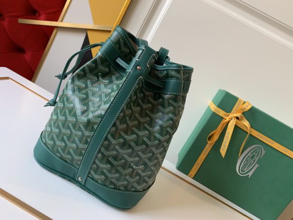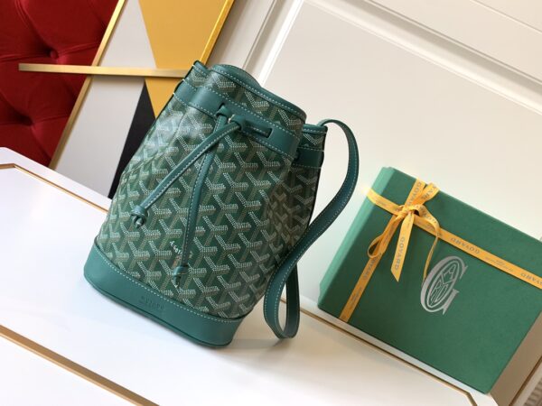 고야드의 2019 크리스마스 신상 물통백입니다. 독특한 패턴과 세련된 디자인이 돋보이며, 청록색으로 어떤 스타일에도 잘 어울립니다.