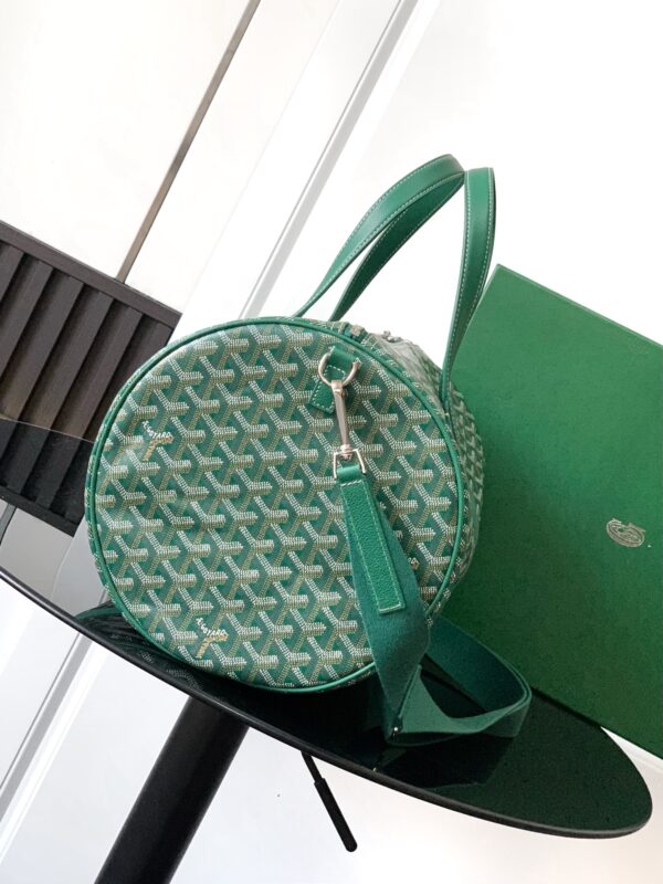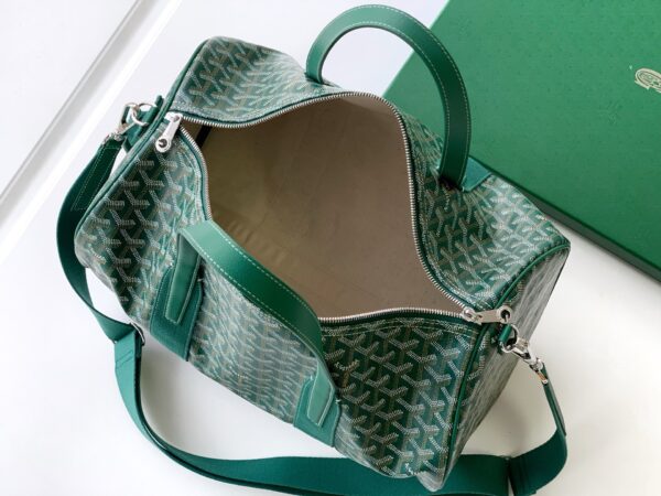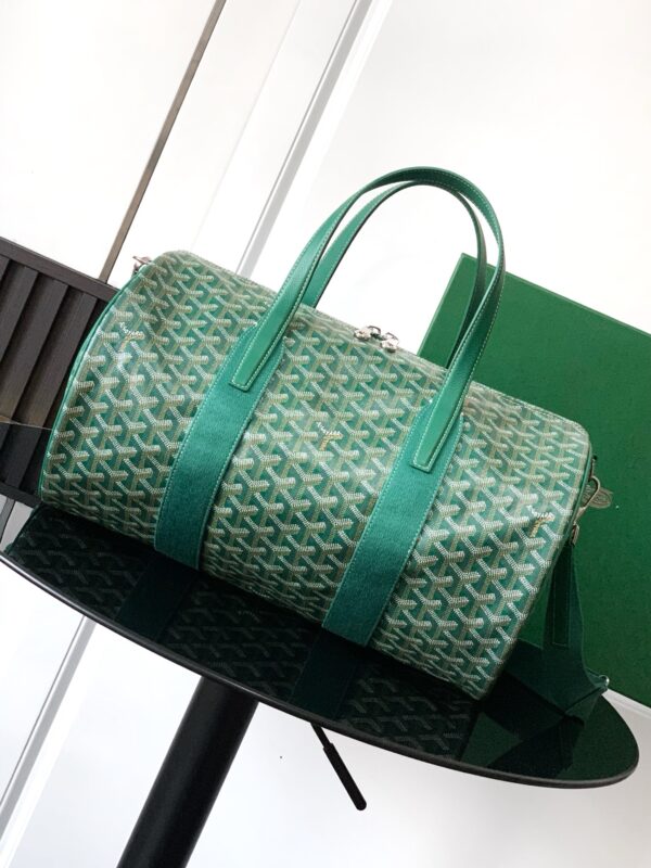 가방 중앙에는 두 개의 손잡이가 있으며, 측면에는 하나의 손잡이가 있어 손으로 들거나 중간 크기의 어깨 끈을 추가하여 어깨에 메거나 크로스백으로 착용할 수 있습니다.