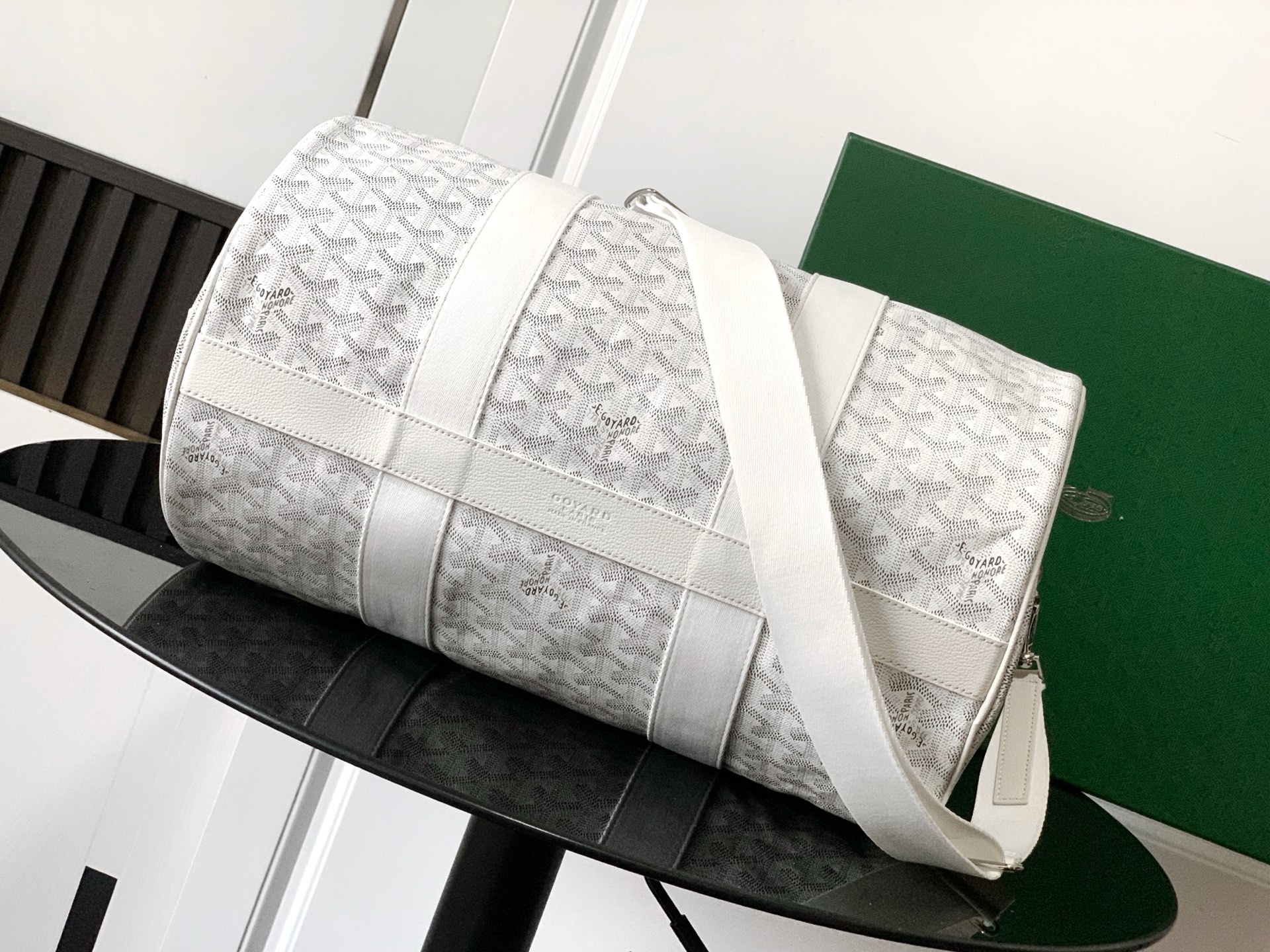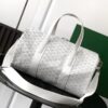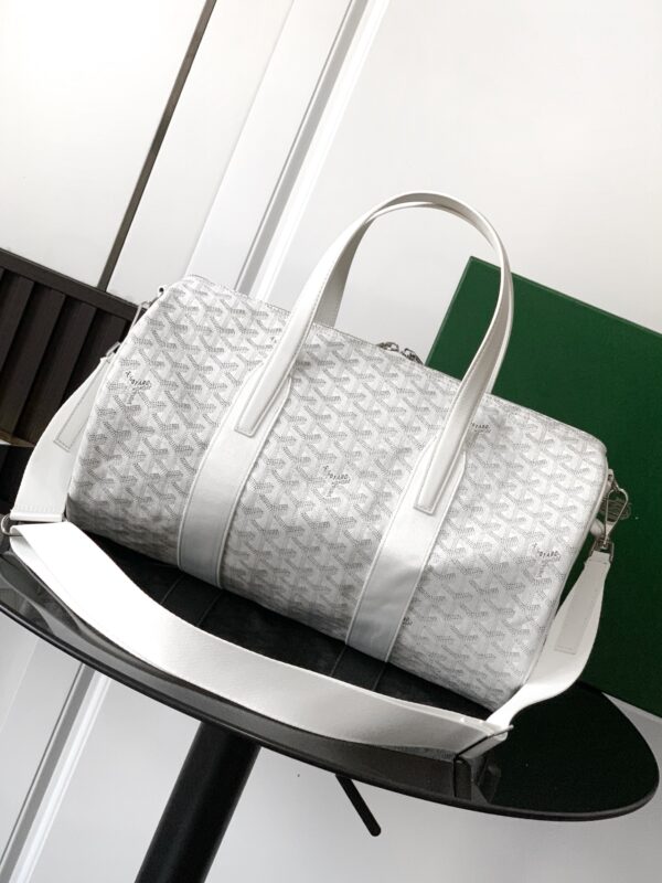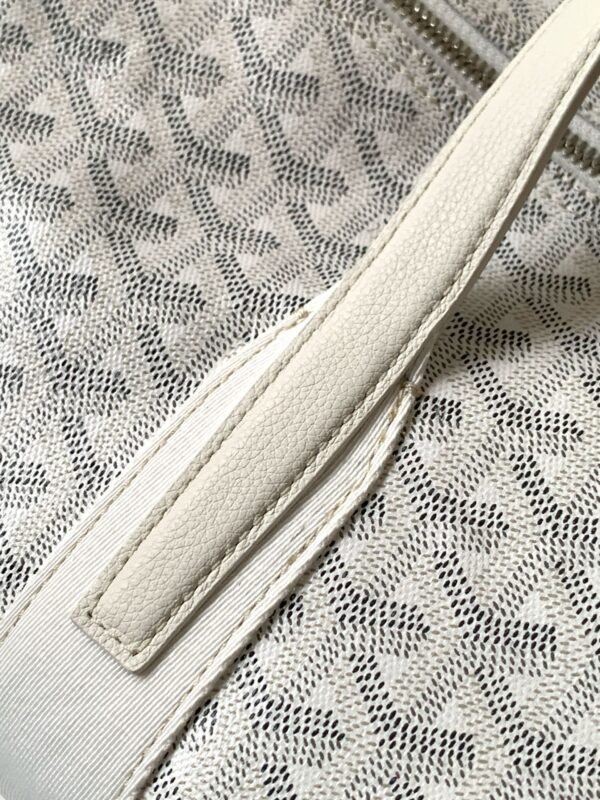 가방 중앙에는 두 개의 손잡이가 있으며, 측면에는 하나의 손잡이가 있어 손으로 들거나 중간 크기의 어깨끈을 추가하여 어깨에 메거나 크로스백으로 착용할 수 있습니다.