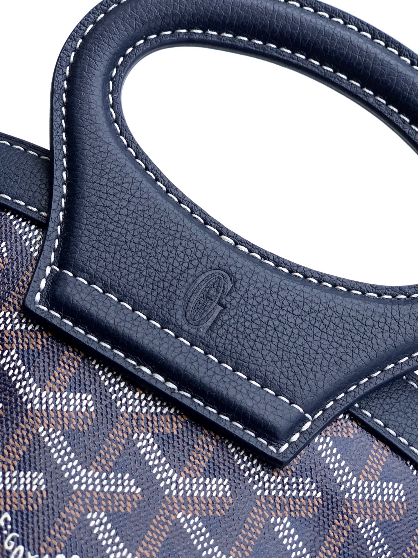 두 개의 가죽 손잡이는 브랜드의 클래식한 여행 가방을 연상시키며, 편안한 그립감을 제공합니다.