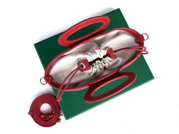 부드러운 면과 마감 처리된 가죽이 조화를 이루며, 내부에는 안전한 수납을 위한 면 린넨 소재의 포켓이 있습니다.