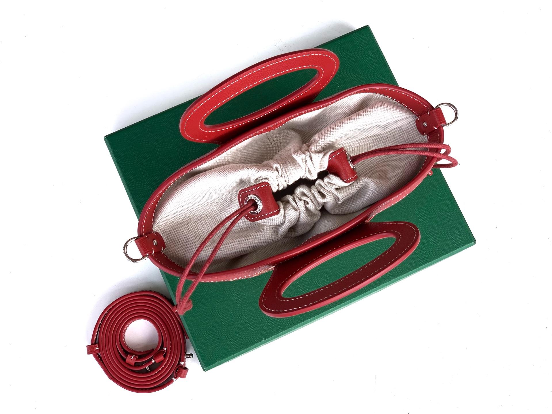 두 개의 가죽 손잡이는 브랜드의 클래식한 여행 가방을 연상시키며, 편안한 그립감을 제공합니다.