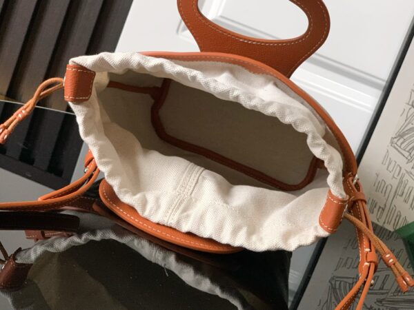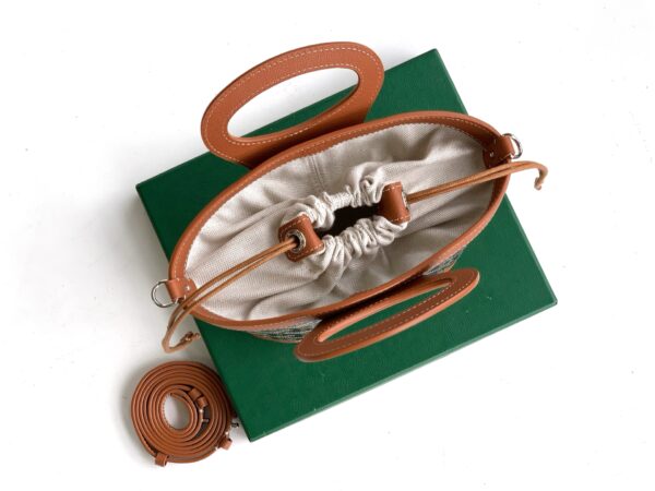 두 개의 가죽 손잡이는 브랜드의 클래식한 여행 가방을 연상시키며, 편안한 그립감을 제공합니다.