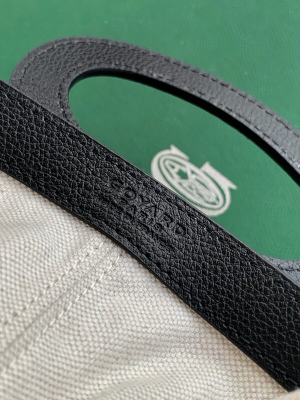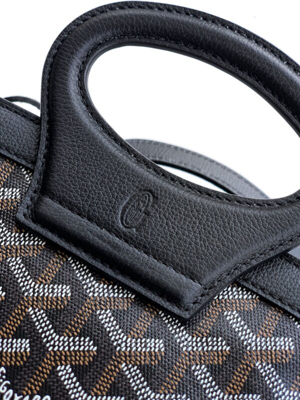 두 개의 가죽 손잡이는 브랜드의 클래식한 여행 가방을 연상시키며, 편안한 그립감을 제공합니다.
