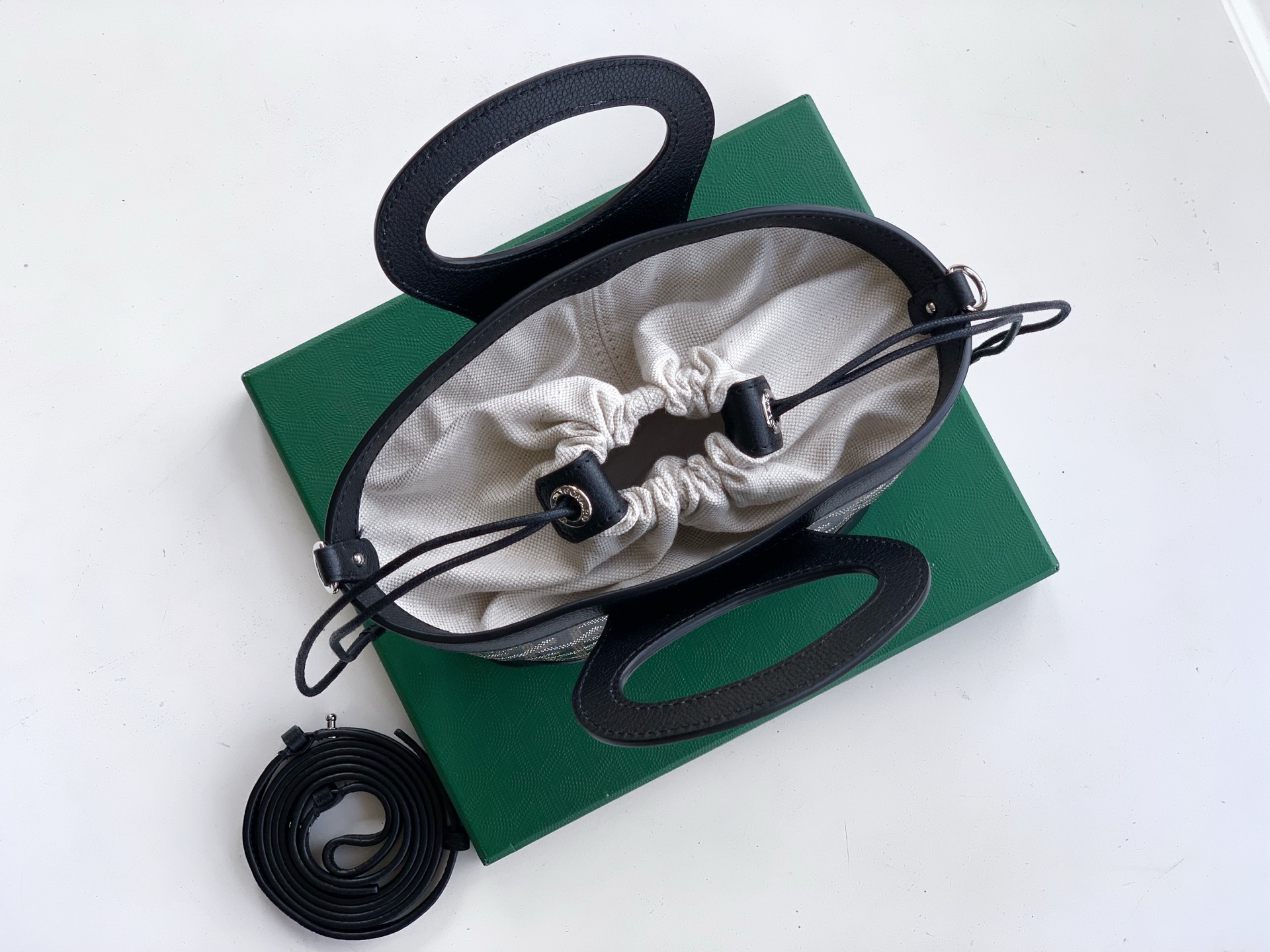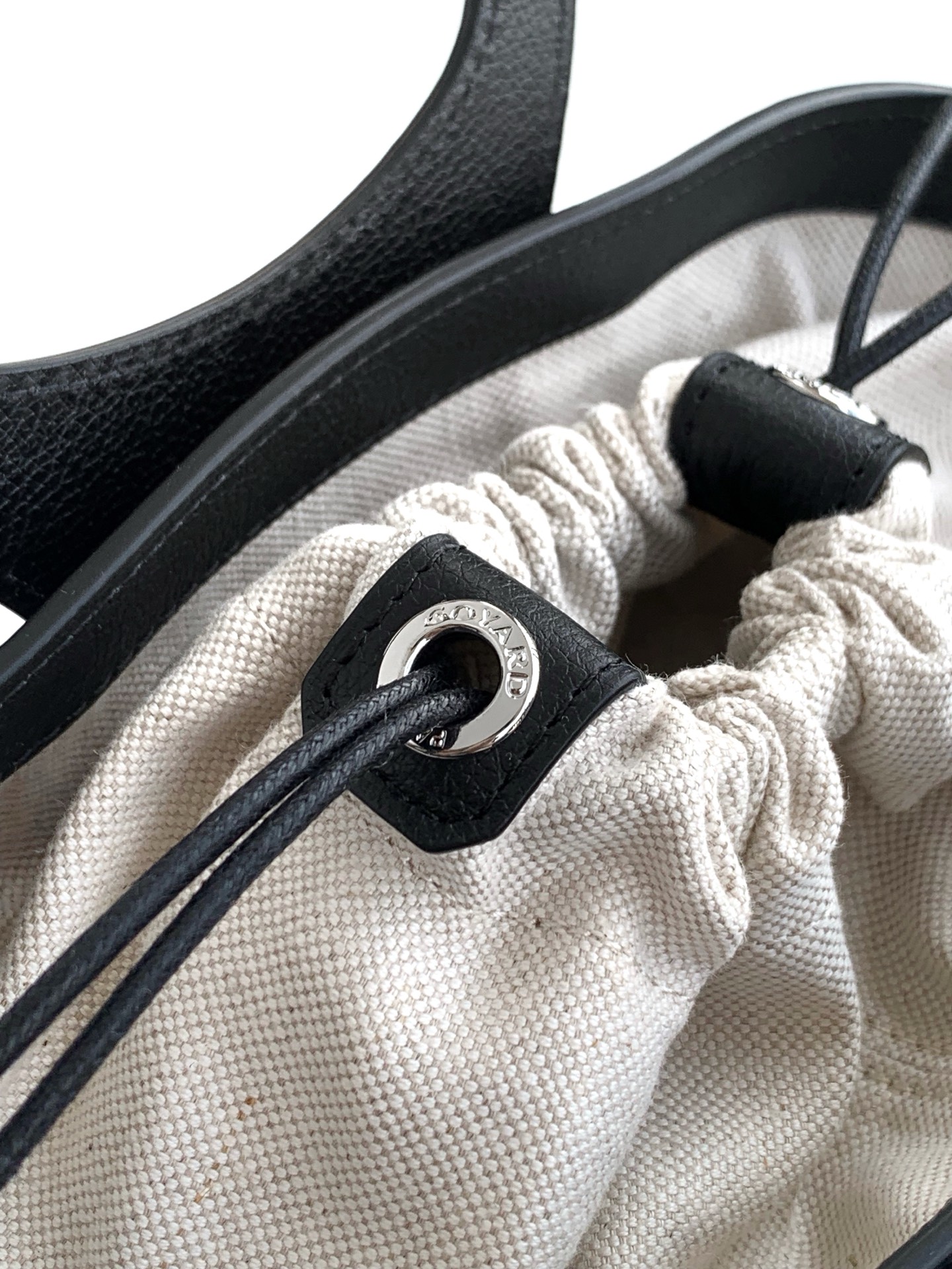 내부는 면과 린넨 혼합 소재로 제작되어 부드러운 촉감을 자랑하며, 실용적인 조임끈이 개인 소지품을 안전하게 보호합니다.
