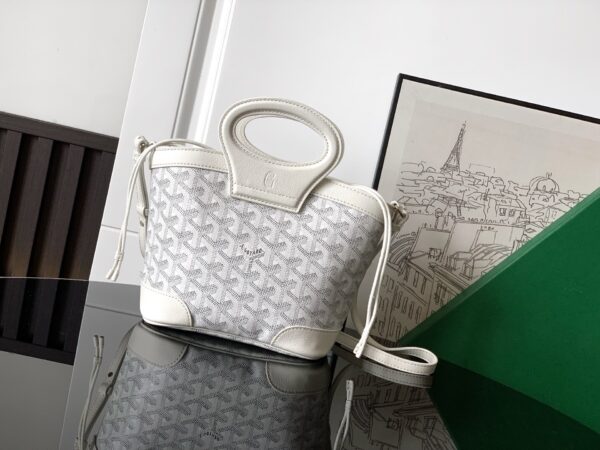 두 개의 가죽 손잡이는 브랜드의 클래식한 여행 가방을 연상시키며, 편안한 그립감을 제공합니다.
