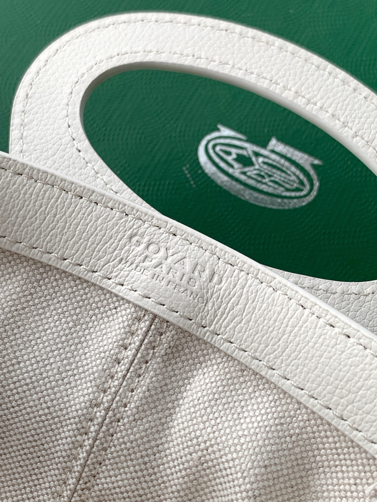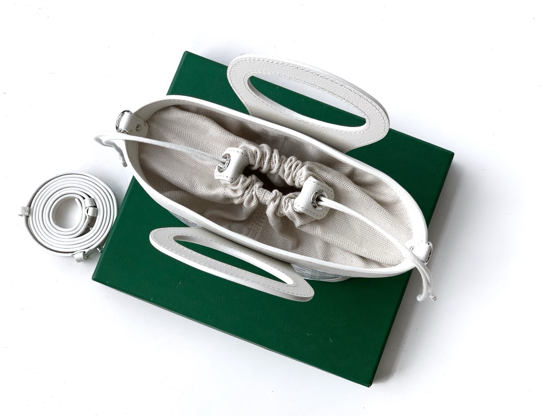 두 개의 가죽 손잡이는 브랜드의 클래식한 여행 가방을 연상시키며, 편안한 그립감을 제공합니다.
