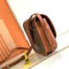 단일 스트랩과 금속 링을 통해 쉽게 열고 닫을 수 있으며, 가죽 테두리가 가방의 실루엣을 더욱 강조합니다.