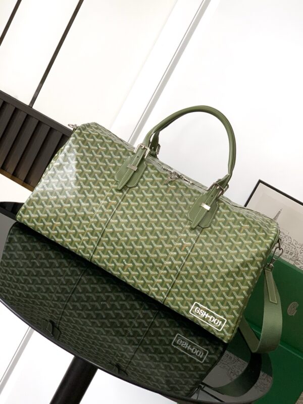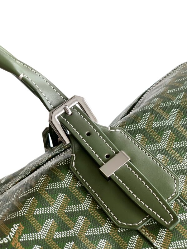 고야드의 2025년 한정판 보스턴 50 여행 가방은 독특한 카키 그린 GOYARDINE 캔버스로 제작되었습니다.