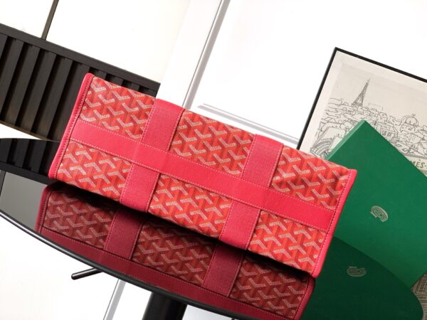 고야드의 빌렛 미니 손잡이 백은 2025년 한정판으로, 독특한 소형 사이즈가 특징입니다. 두 가지 색상의 고야르딘 캔버스를 사용하여, 아마 꽃의 생동감 넘치는 색조인 아이리스 퍼플과 로즈 핑크에서 영감을 받았습니다.