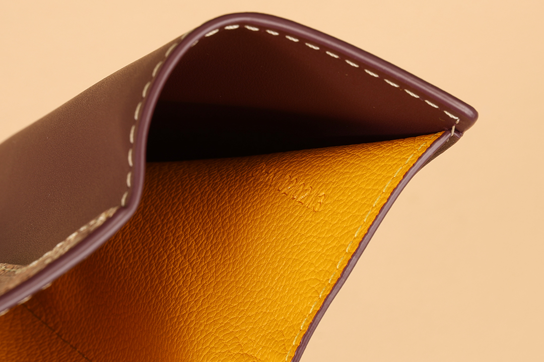 주요 소재는 고야르딘 캔버스와 소가죽으로, 내구성이 뛰어나며 고급스러운 질감을 제공합니다.