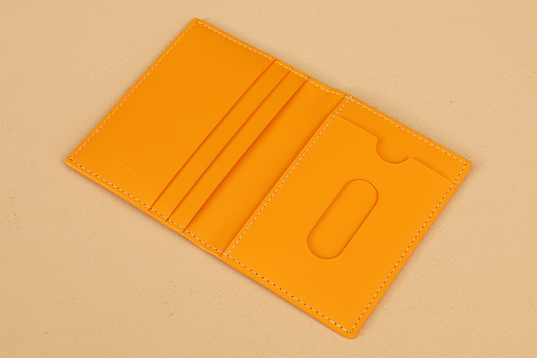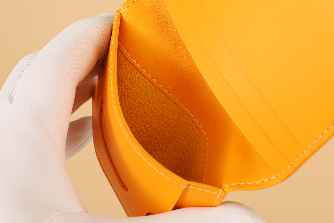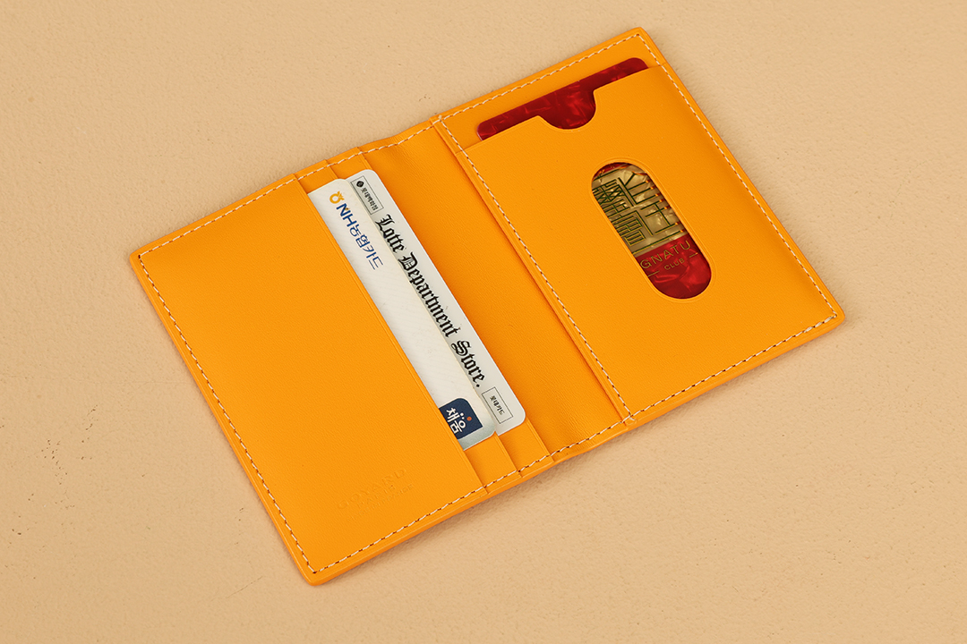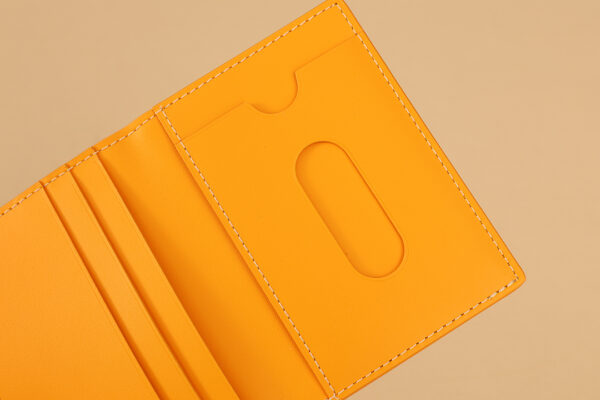 내부는 노란색 NIÈVRE 산양가죽으로 마감되어 있어 세련된 느낌을 더합니다. 이 지갑은 우아한 스타일을 완성해 줄 완벽한 액세서리입니다.