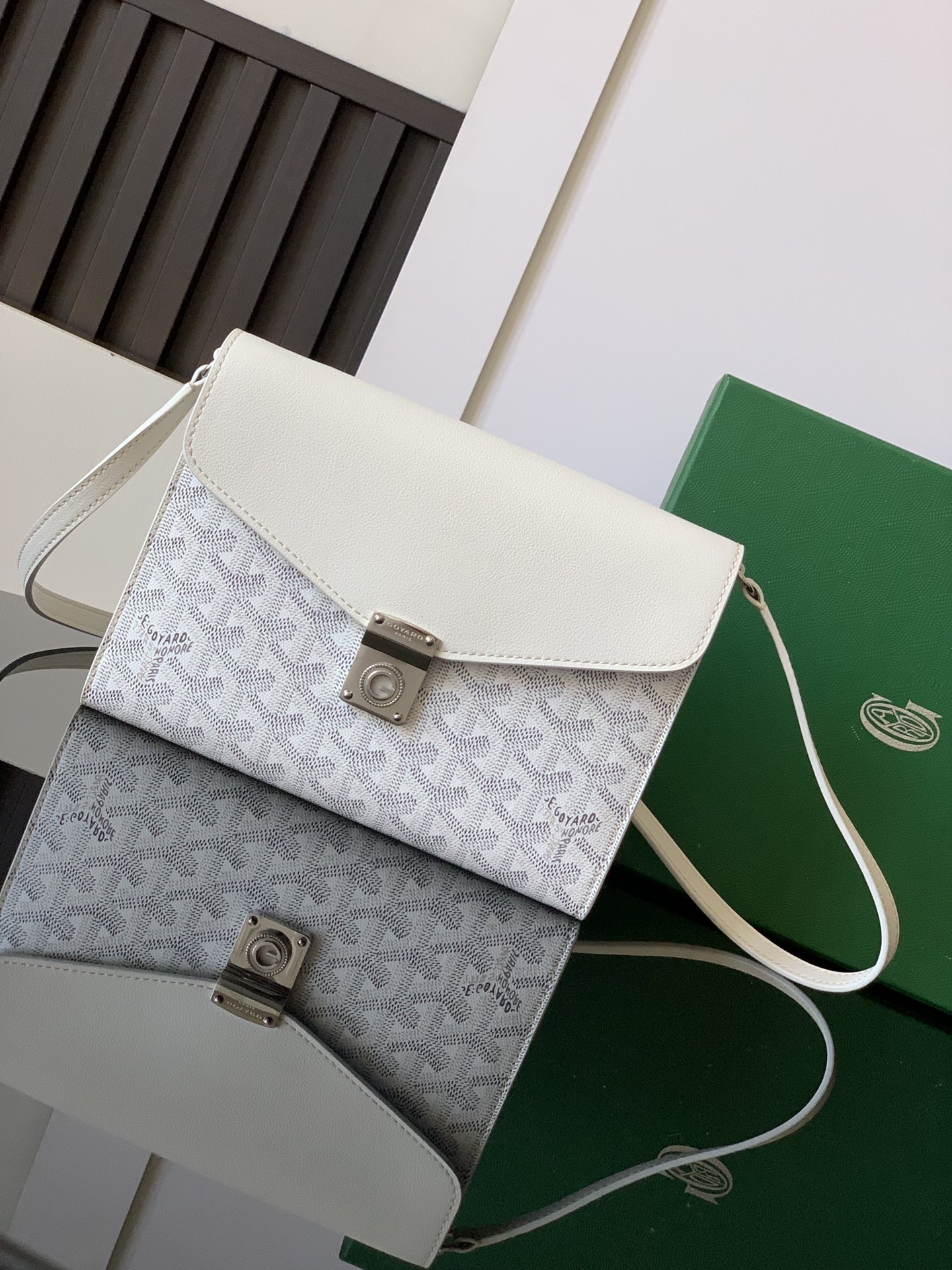 고야드의 시프레 숄더백은 지갑의 기능과 손잡이 가방의 디자인을 결합한 독창적인 아이템입니다.