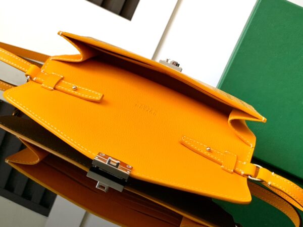 내부에는 6개의 카드 슬롯이 있어 소지품을 깔끔하게 정리할 수 있습니다. 또한, 탈부착이 가능한 조절 가능한 가죽 어깨끈이 있어 다양한 착용 방식으로 활용할 수 있습니다.