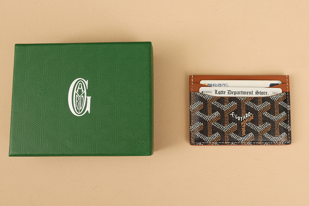 고야드의 초클래식 더블 포켓 카드 지갑입니다. 5개의 카드 슬롯이 있어 실용적이며, 가벼운 외출에 적합합니다.