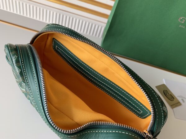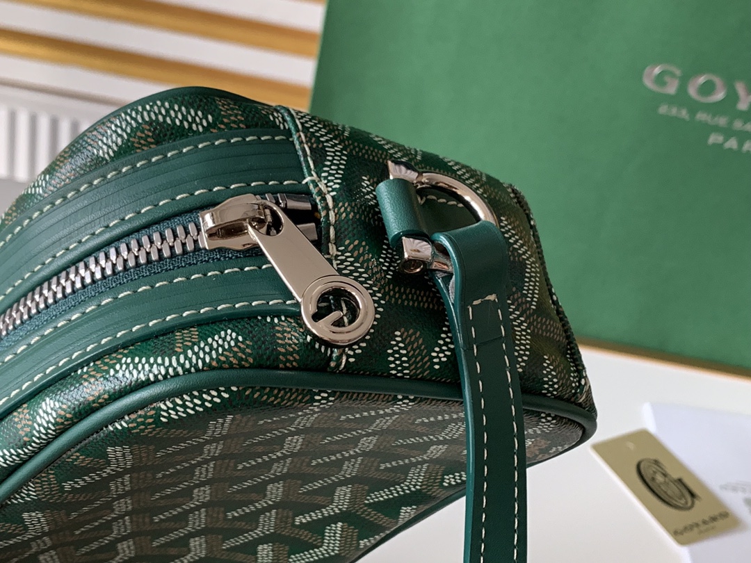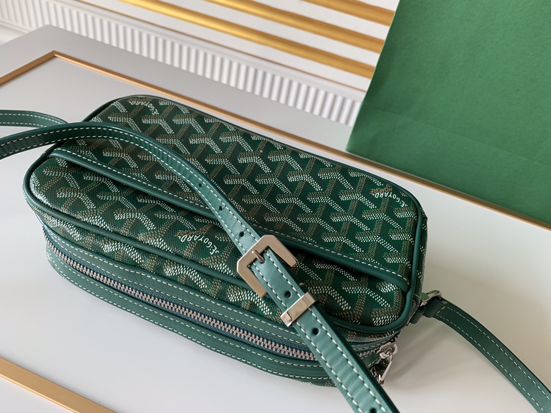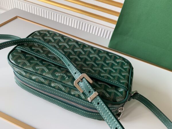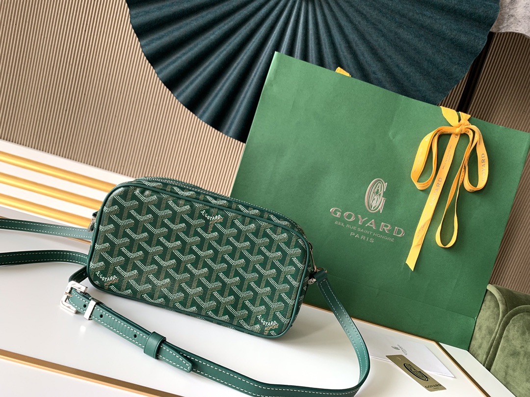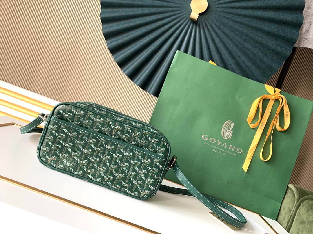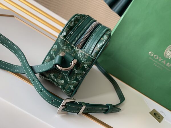 고야드의 카메라백은 1853년부터 이어온 전통을 자랑합니다. 내구성이 뛰어난 면과 대마 섬유 혼합 소재로 제작되어 방수 기능을 갖추고 있습니다.