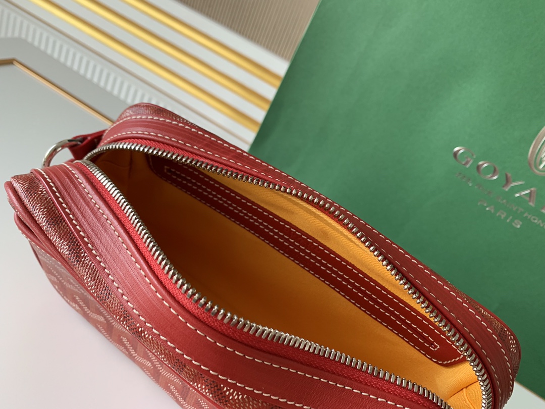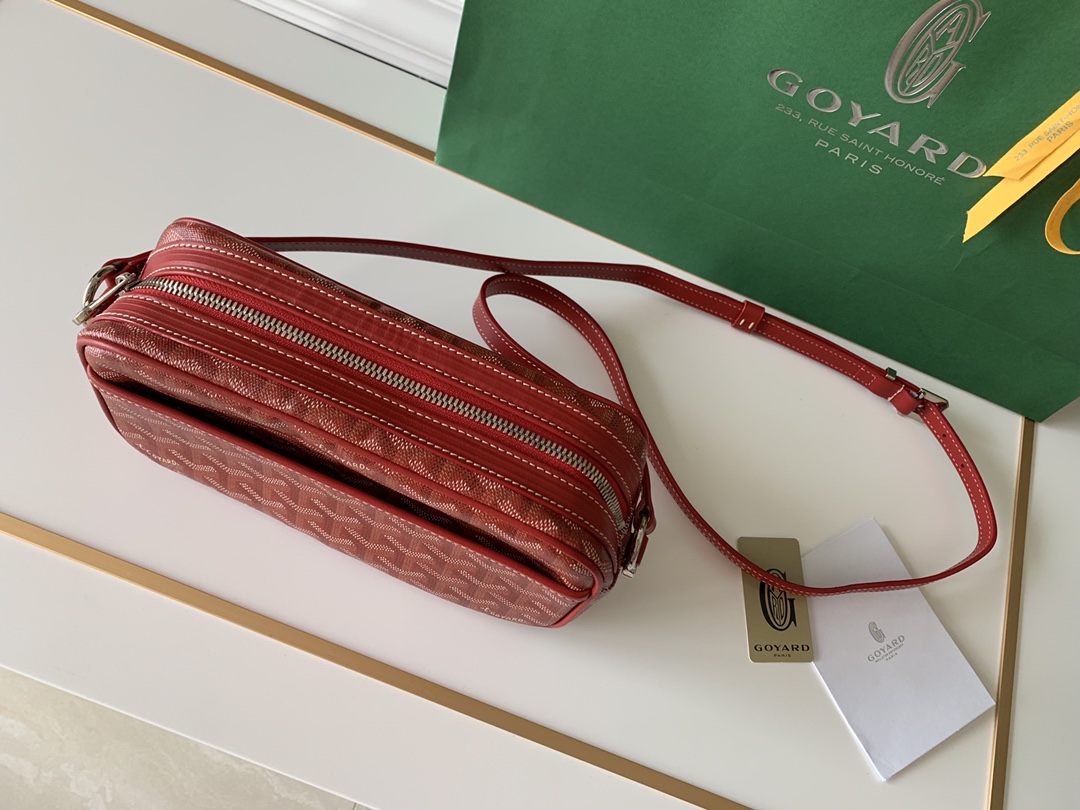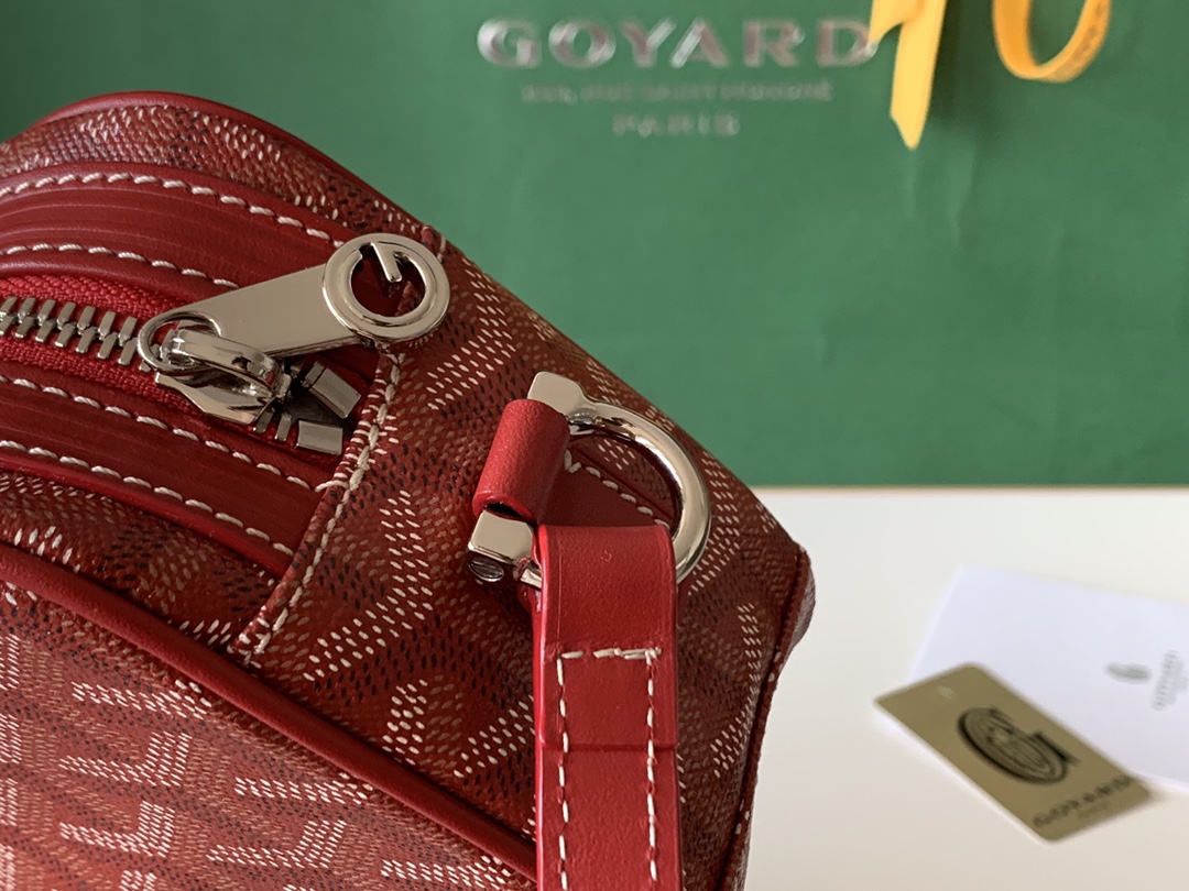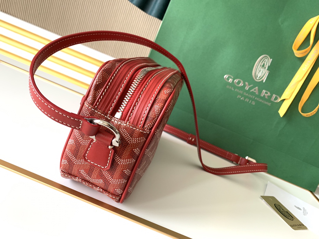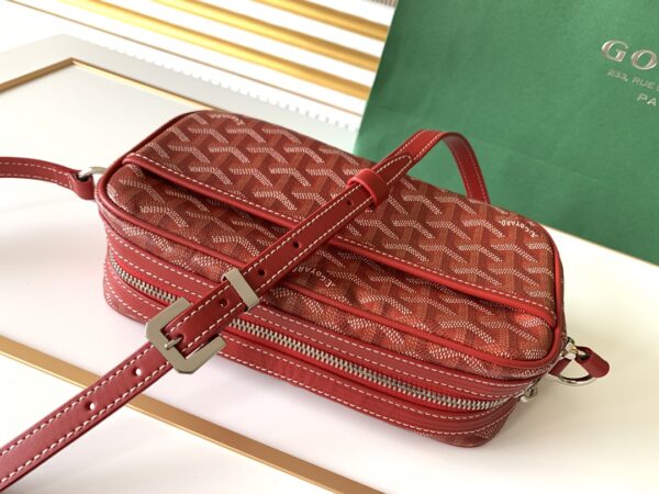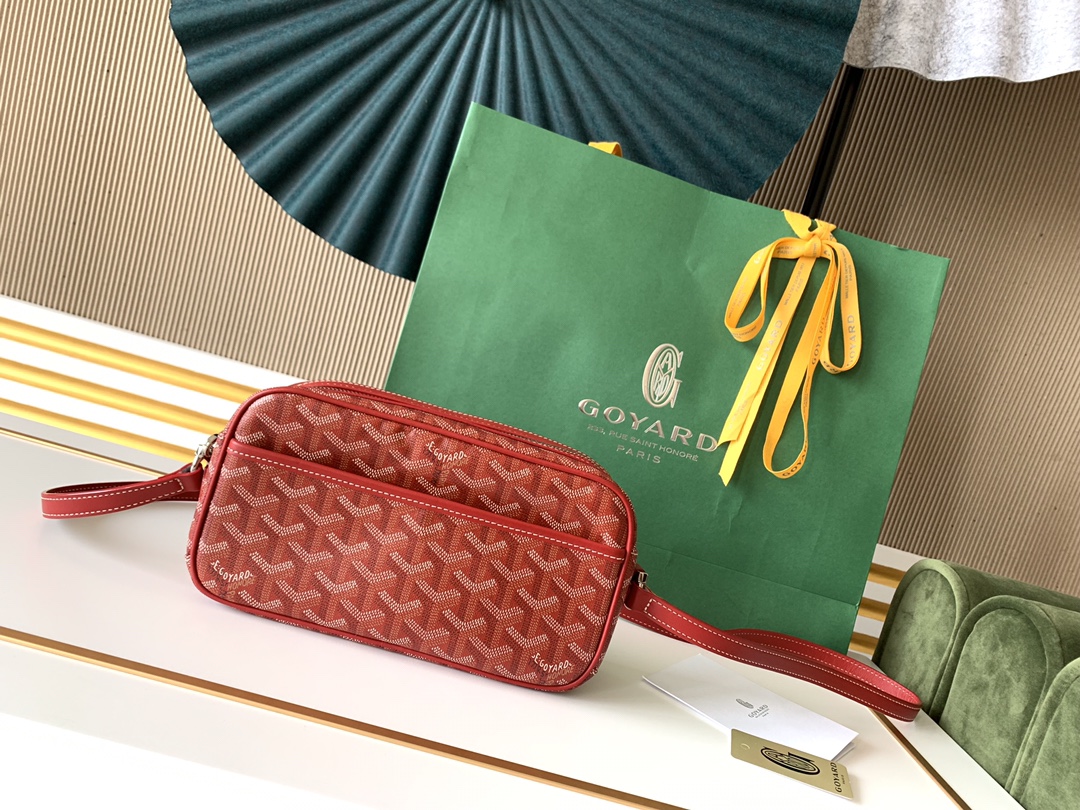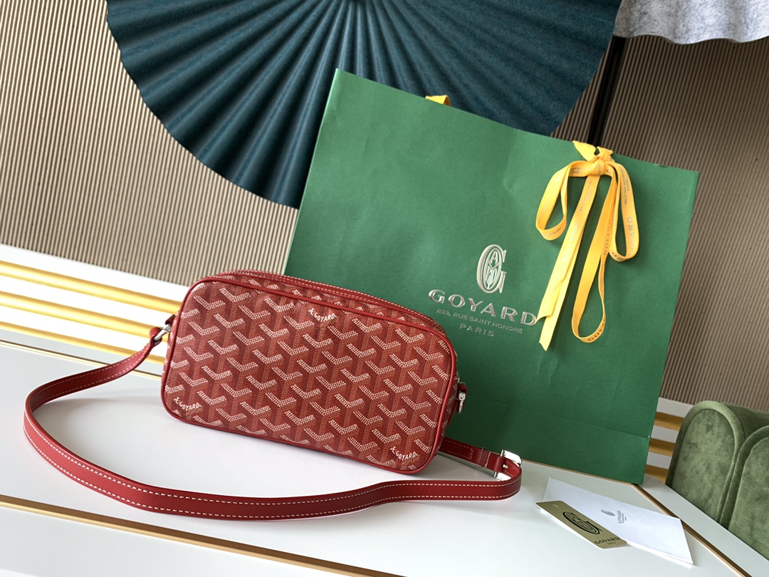 고야드의 카메라백은 1853년부터 이어온 전통을 자랑합니다. 내구성이 뛰어난 면과 대마 섬유 혼합 소재로 제작되어 방수 기능이 탁월합니다.