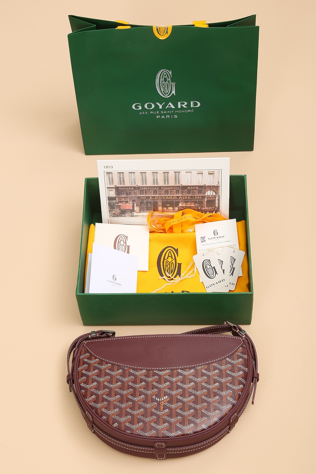 고야드의 히론델 백은 반달 모양의 독특한 디자인으로, 특별한 의미를 지닌 아이템입니다.