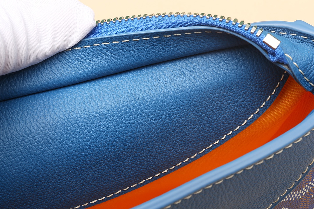 GOYARDINE 캔버스와 CHEVROCHES 소가죽이 조화를 이루어 내구성과 고급스러움을 동시에 제공합니다.