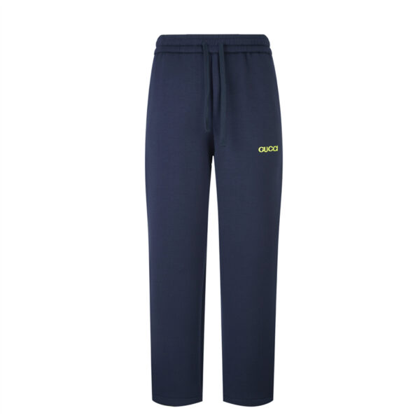 - 구찌의 로고 패치가 부착된 비스코스 저지 팬츠로, 편안한 착용감을 제공합니다.