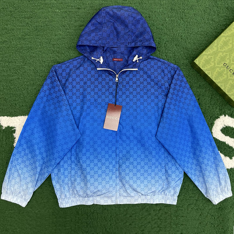 - 이 제품은 GG 모티브가 적용된 그라데이션 테크니컬 포플린 지퍼 자켓입니다.