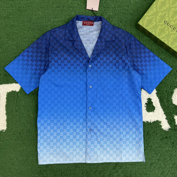 - 구찌 GG 모티브 디자인이 적용된 볼링 셔츠로 활동적인 분위기에 적합합니다.