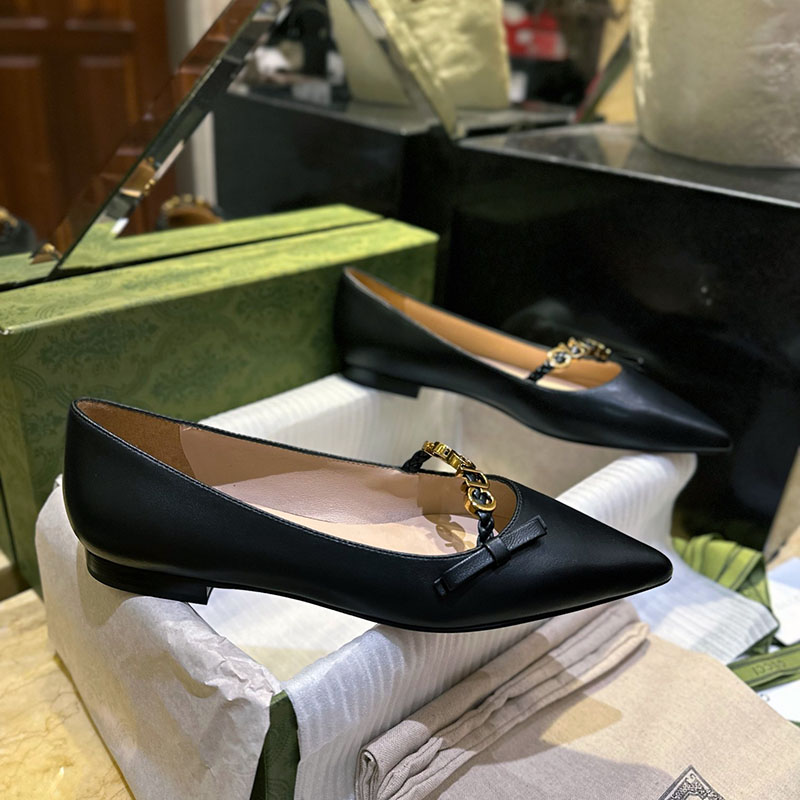 구찌 [TJ공장] 로고 플라크 보우 발레 플랫 슈즈