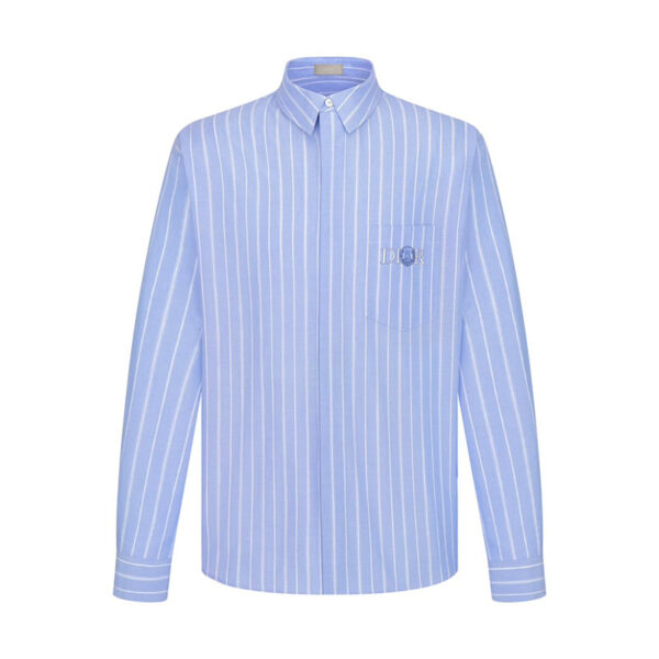 • 디올의 오버사이즈 스트라이프 셔츠로, 여유 있는 핏과 세련된 스트라이프 패턴이 특징입니다.