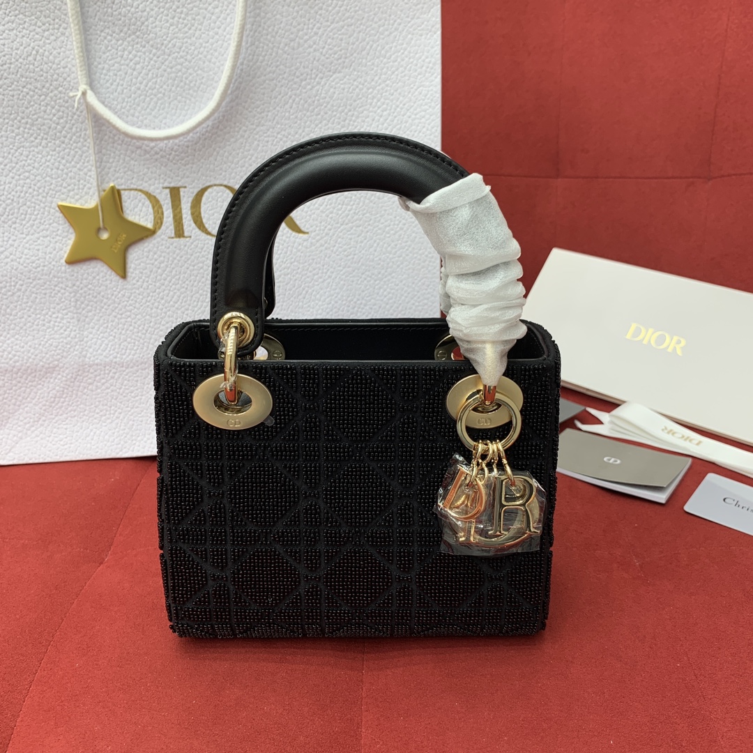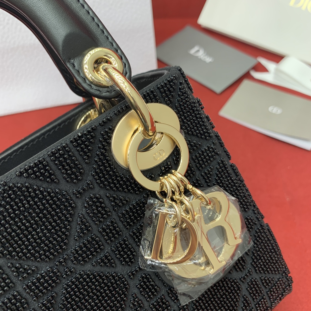 디올의 레이디 디올 미니백은 고급스러운 자수 디테일로 특별한 매력을 더했습니다.