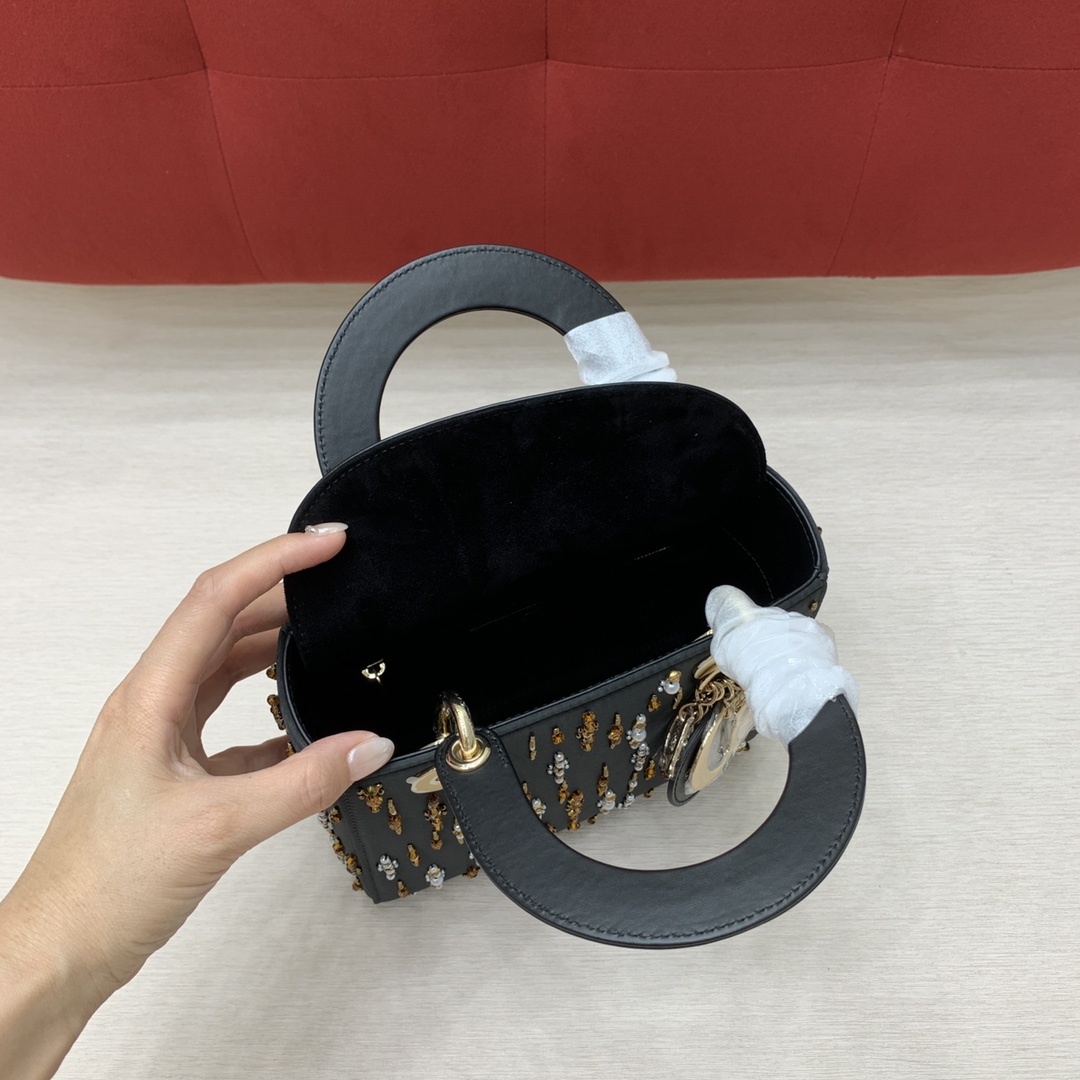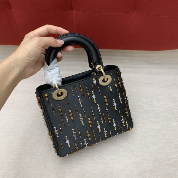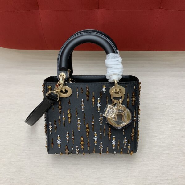 디올의 레이디 디올 백은 고급스러운 캐비어 가죽으로 제작되어 세련된 느낌을 줍니다.