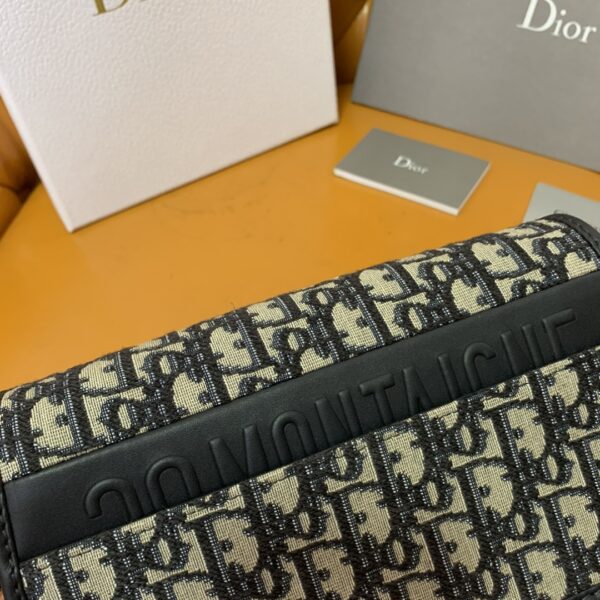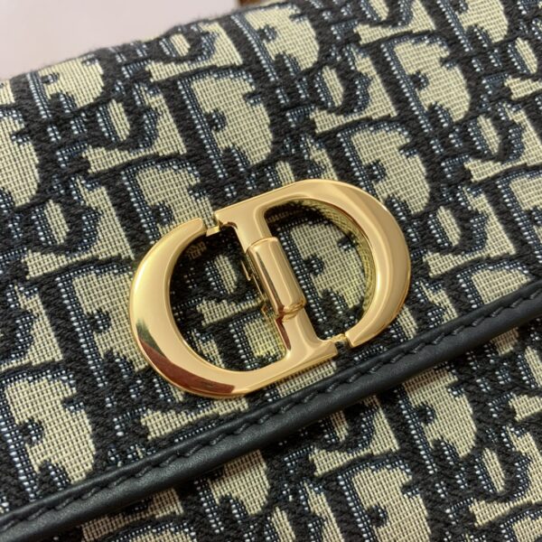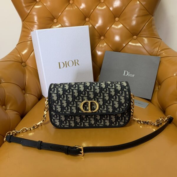디올의 몽타뉴 30 AVENUE 체인백은 블루 오블리크 프린트 면 소재로 제작되어 세련된 매력을 더합니다.