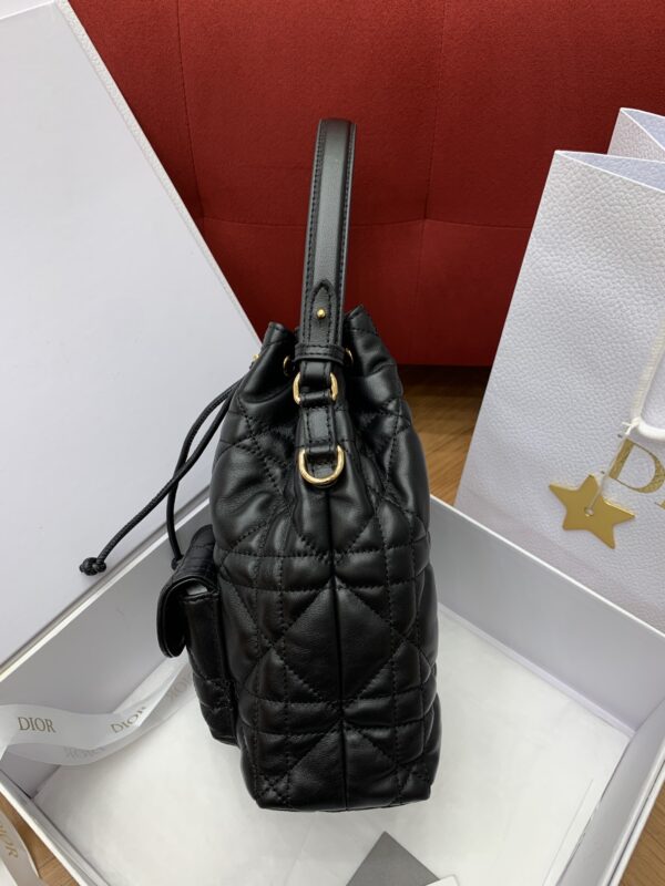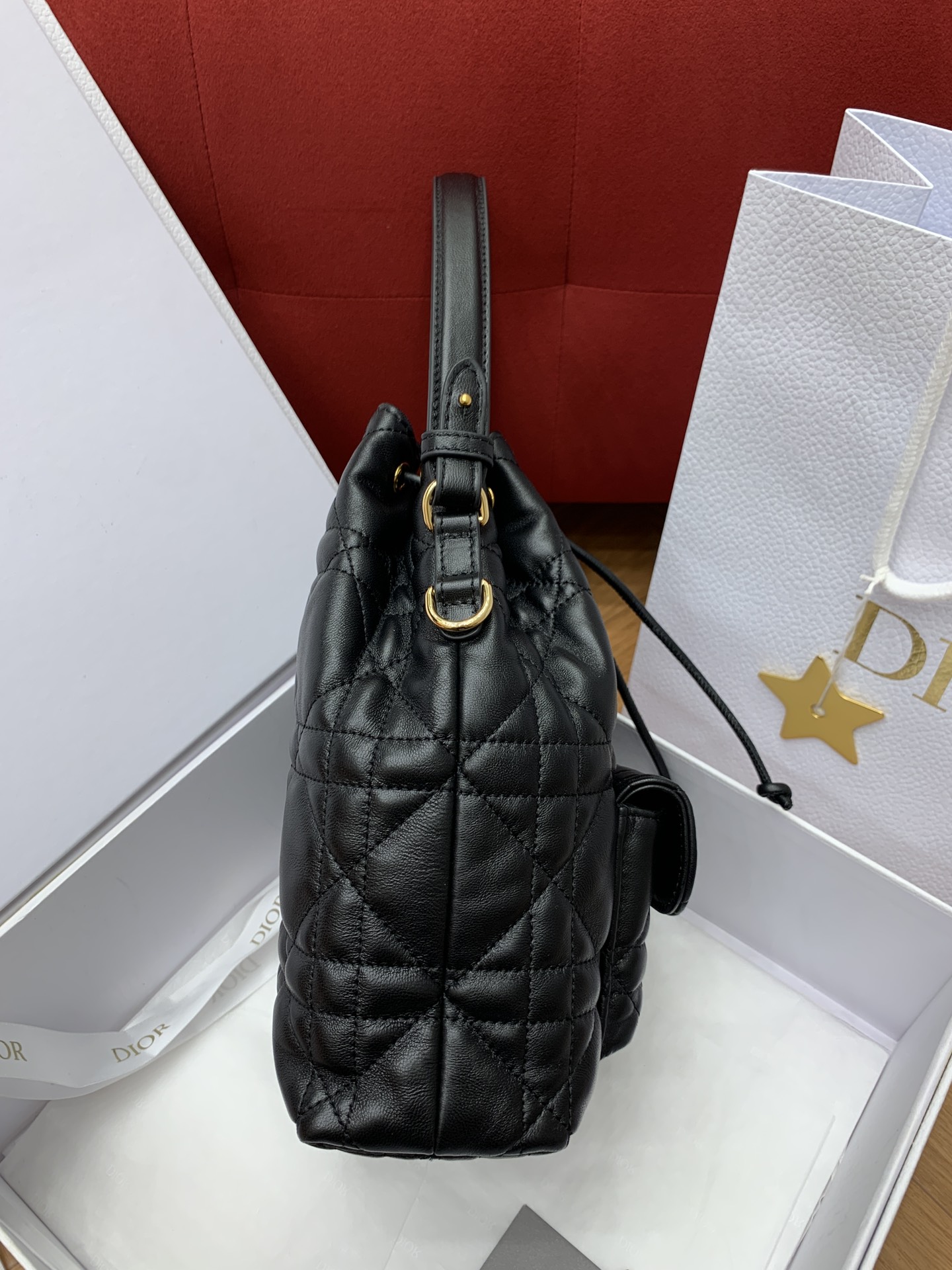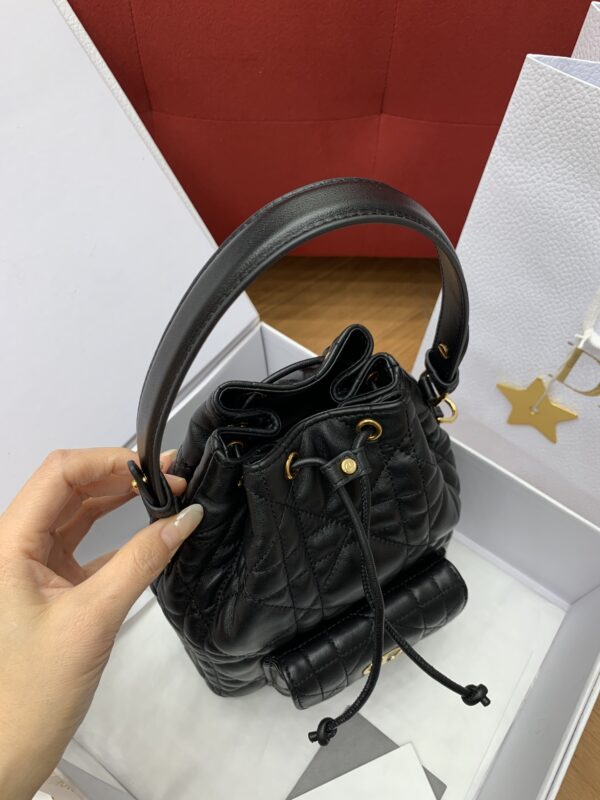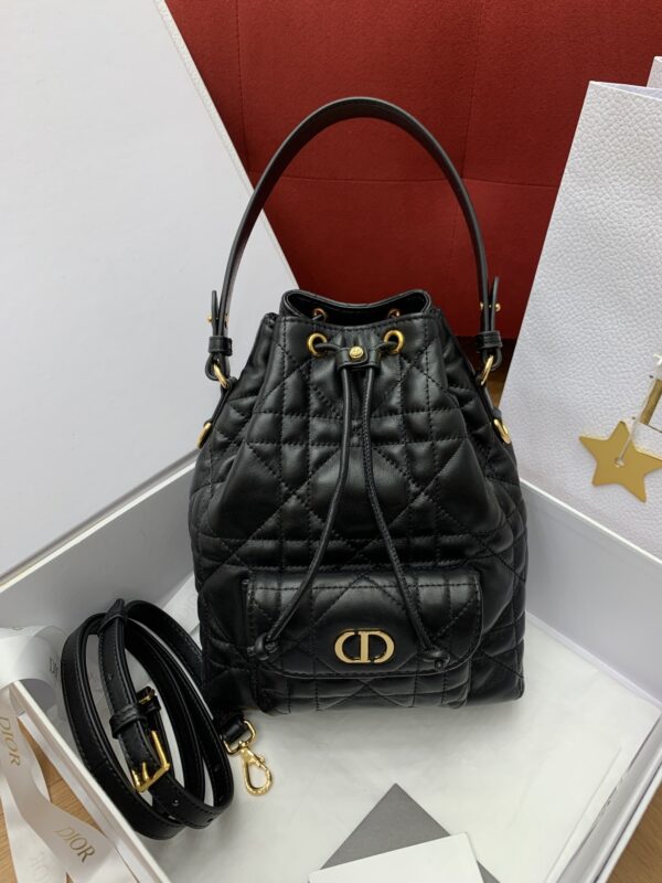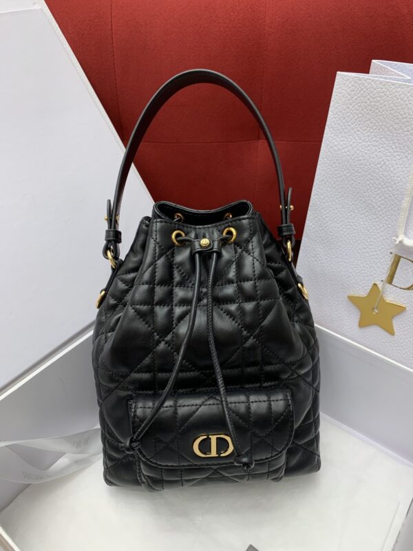 우아함과 품격을 갖춘 디올의 물통백입니다. 이 가방은 브랜드의 정교한 장인정신과 패션 철학을 그대로 담고 있습니다.