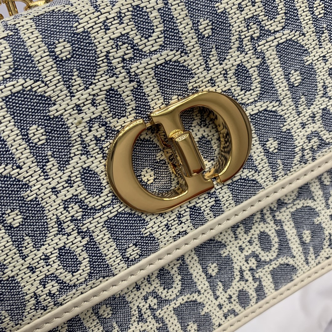 가벼운 코튼 데님으로 장식된 내구성 있는 자수 디테일이 클래식한 오블리크 패턴을 강조하며, 복고풍의 골드 메탈 CD 잠금 장치가 포인트입니다.