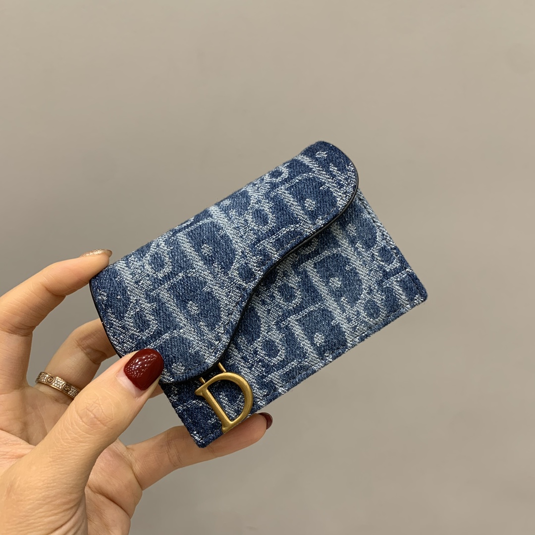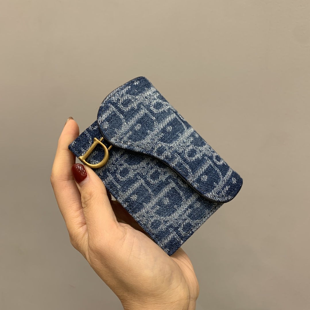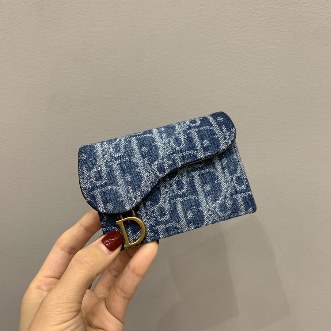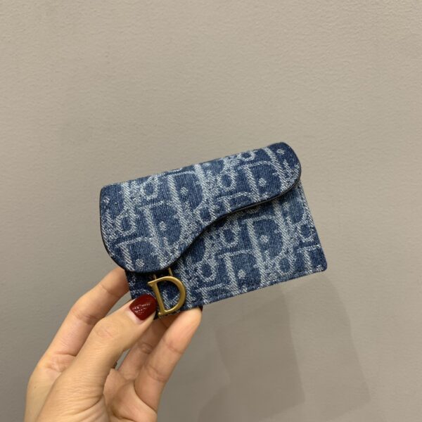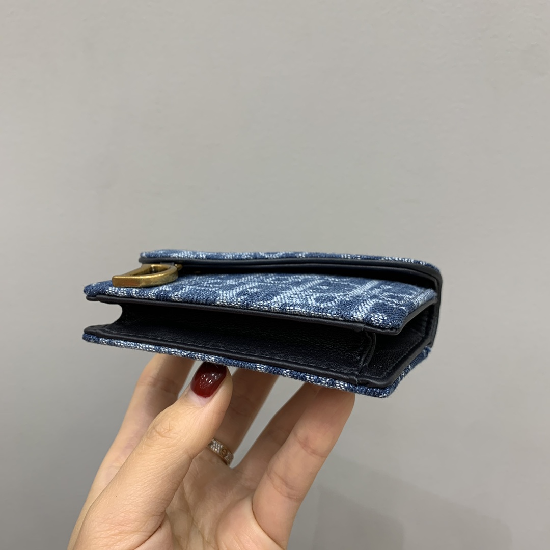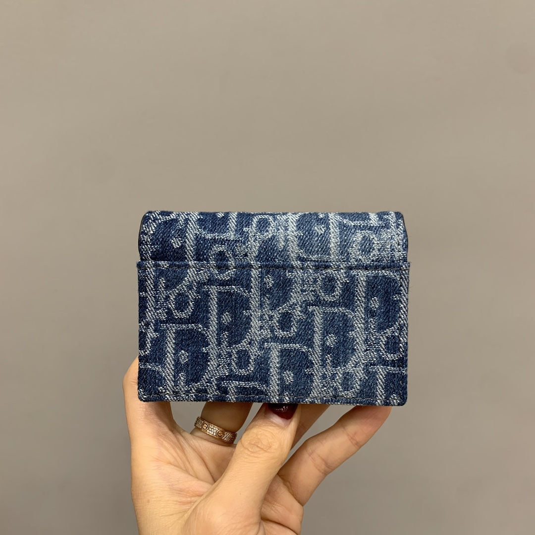 디올 (OC) 블룸 마리너 카드 홀더 카드 지갑 데님 디올 로고 패턴 블루 5611