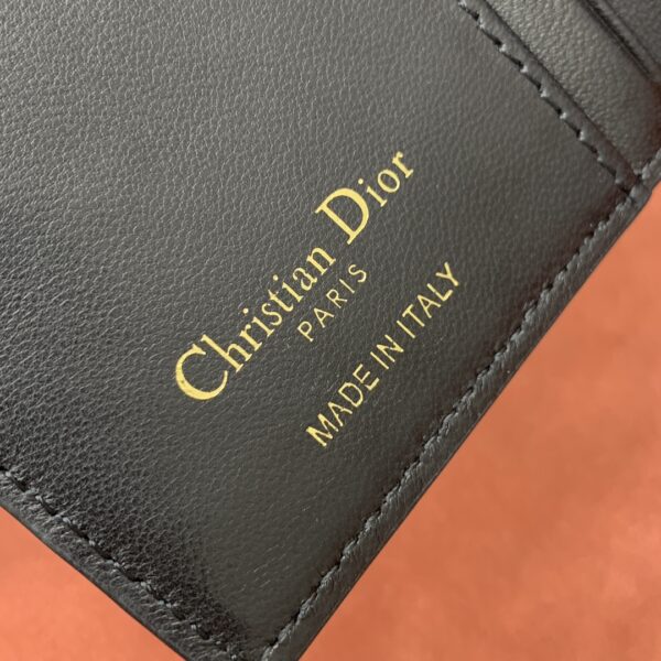 지갑의 전면에는 디올의 상징적인 CD 로고가 세련되게 장식되어 있어, 브랜드의 아이코닉한 매력을 한층 강조합니다.