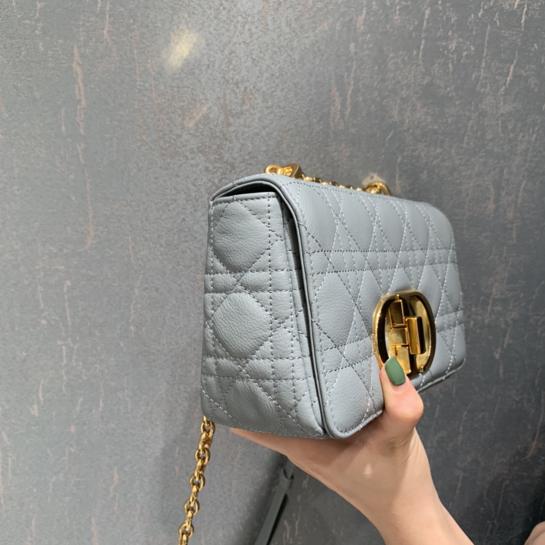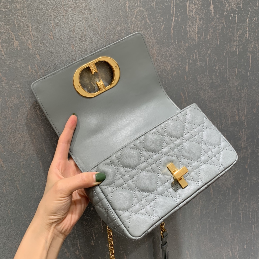 디올의 카로 백은 클래식한 다이아몬드 퀼팅 디자인으로, 세련된 매력을 더해줍니다.