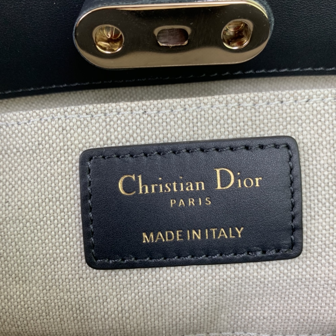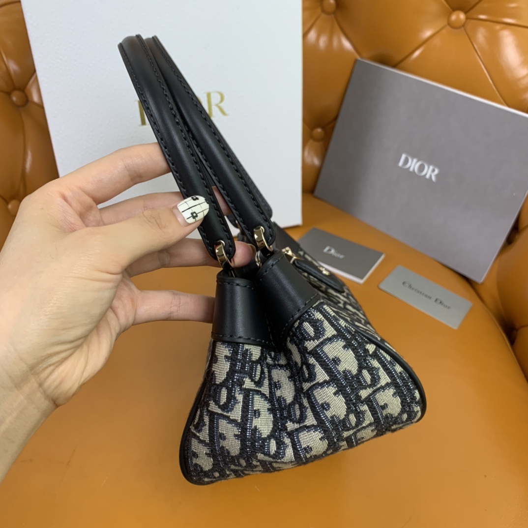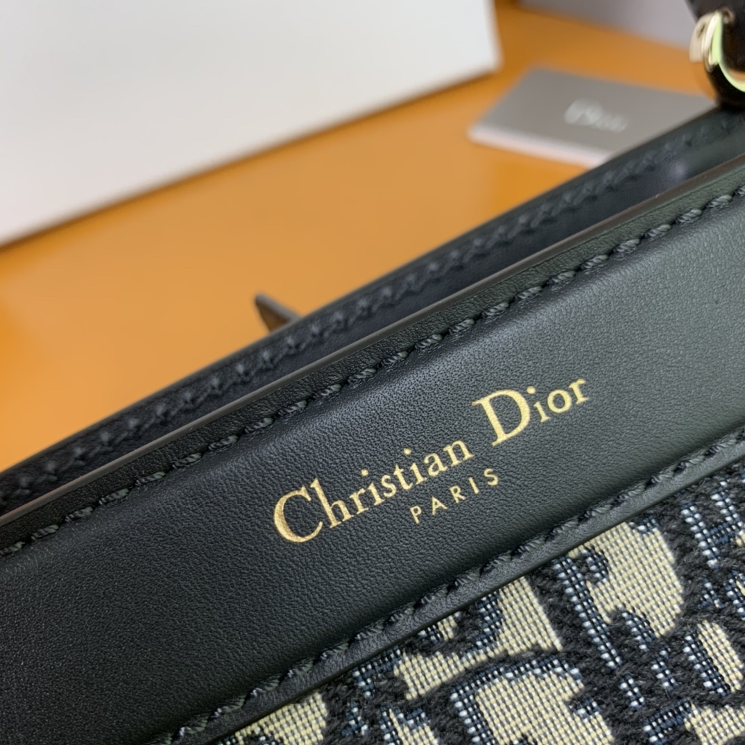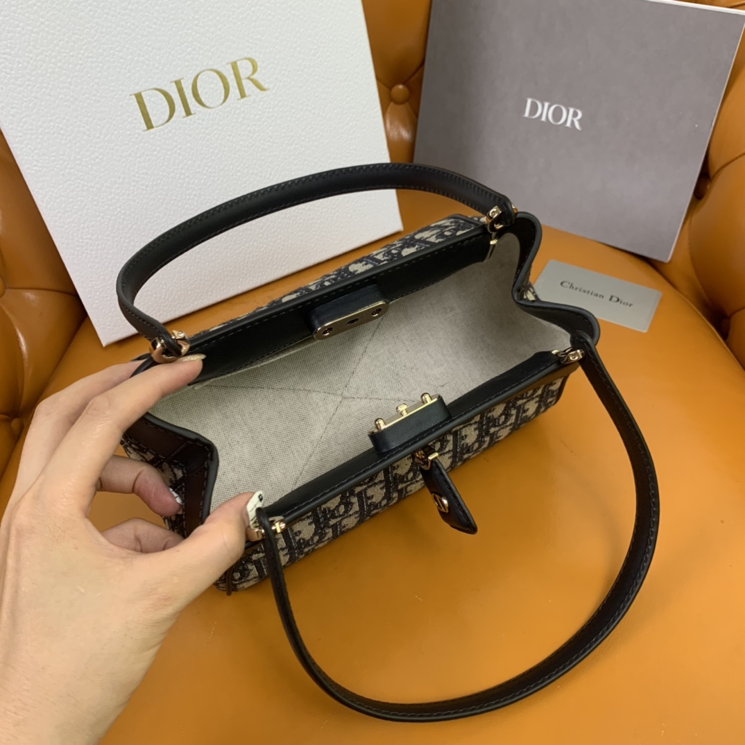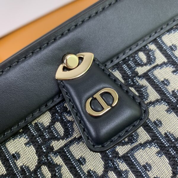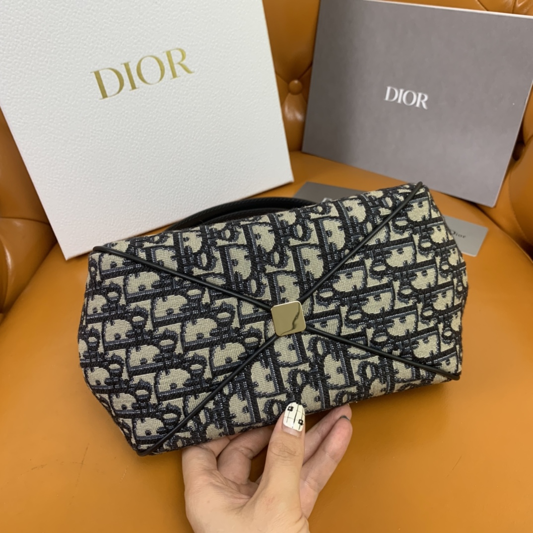 블루 오블리크 패턴의 고급스러운 소재로 제작되어, 독특한 CD 로고 버튼이 포인트를 더합니다. 내부는 다양한 일상 용품을 수납할 수 있는 구조로 실용성을 갖추었습니다.