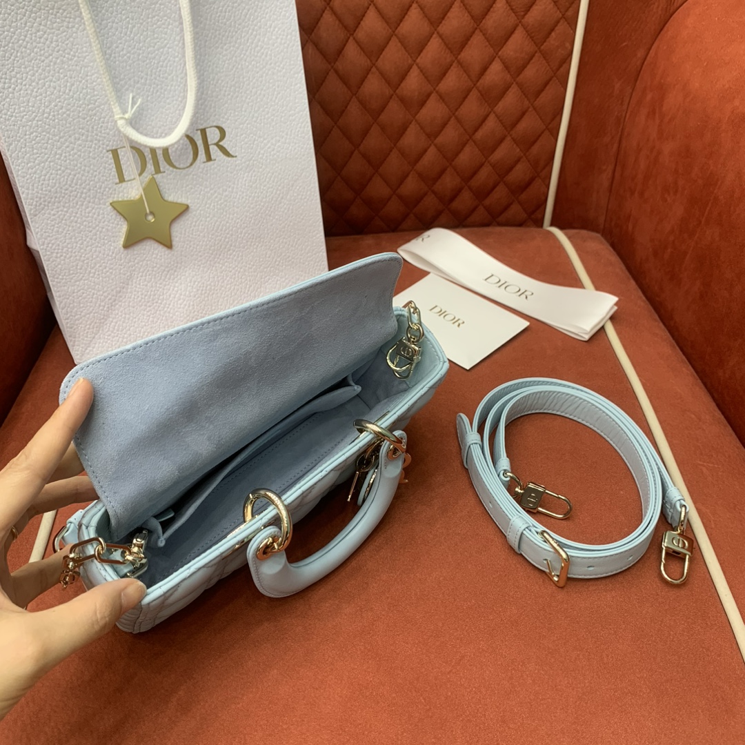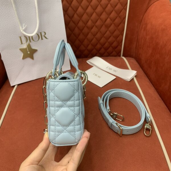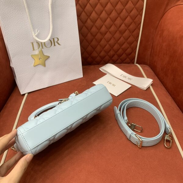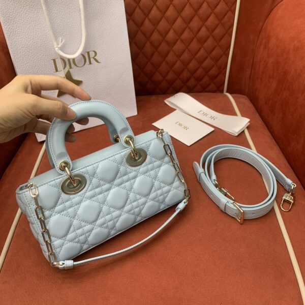 디올의 D-joy 미니백은 세련된 블루 컬러로, 어떤 스타일에도 잘 어울립니다.