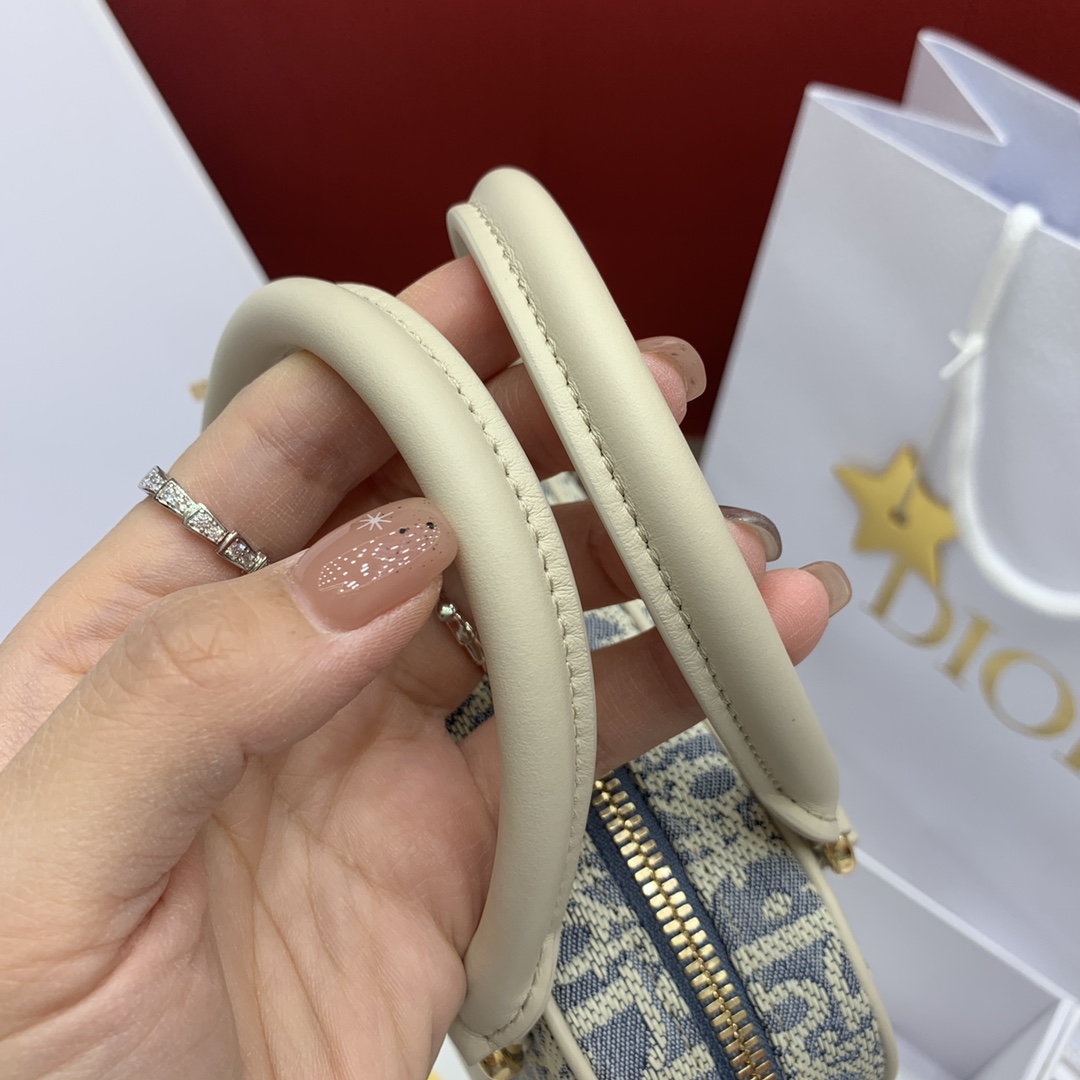 D-Vibe East-West 미니 핸드백은 2025년 봄여름 컬렉션의 신제품으로, 현대적인 실루엣이 돋보입니다.
