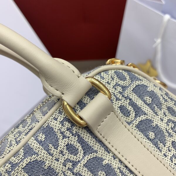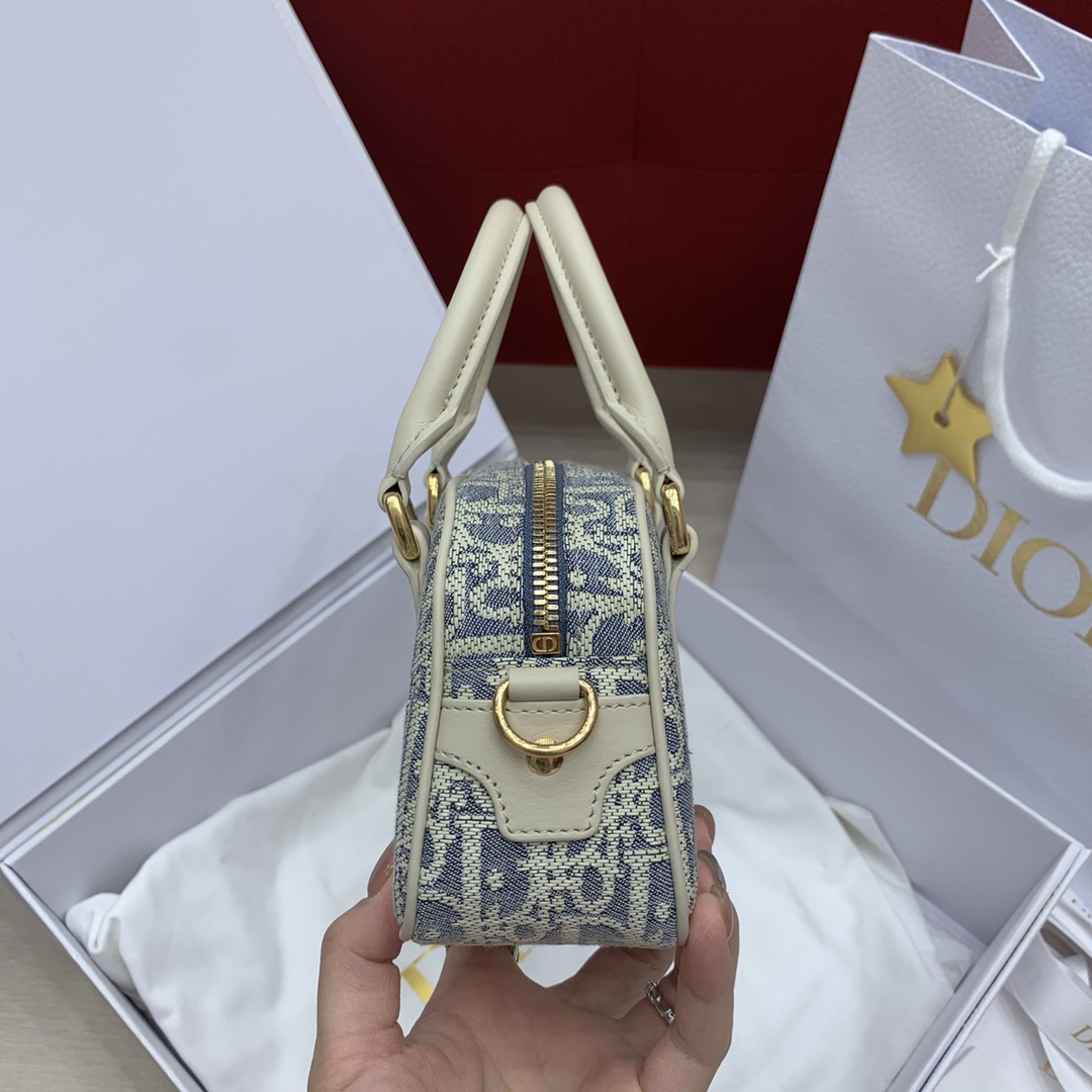 블루 체크 패브릭과 경량의 면 소가죽으로 제작되어 가벼운 착용감을 제공합니다. 내구성이 뛰어난 술로 장식된 디테일이 Oblique 프린트를 강조하며, 부드러운 베이지색 소가죽이 포인트를 더합니다.
