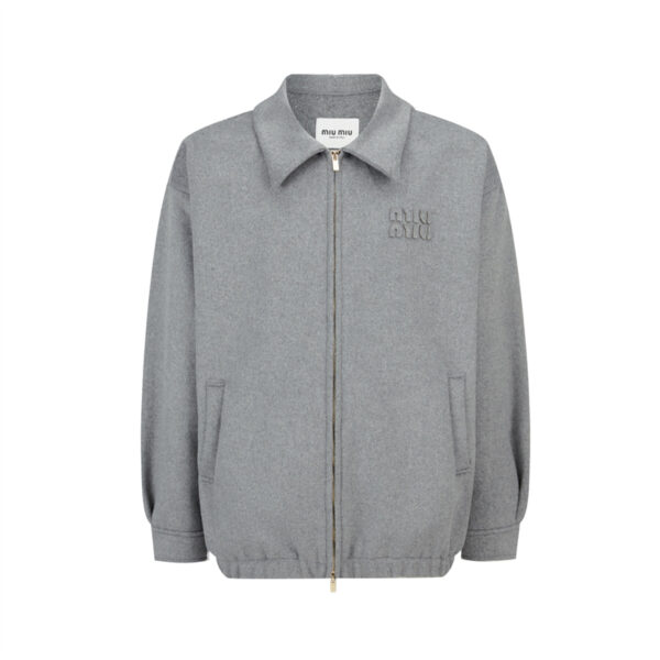 미우미우 【잔디집2】 로고 블루종 캐시미어 더블 자켓(세븐) 전면 이미지