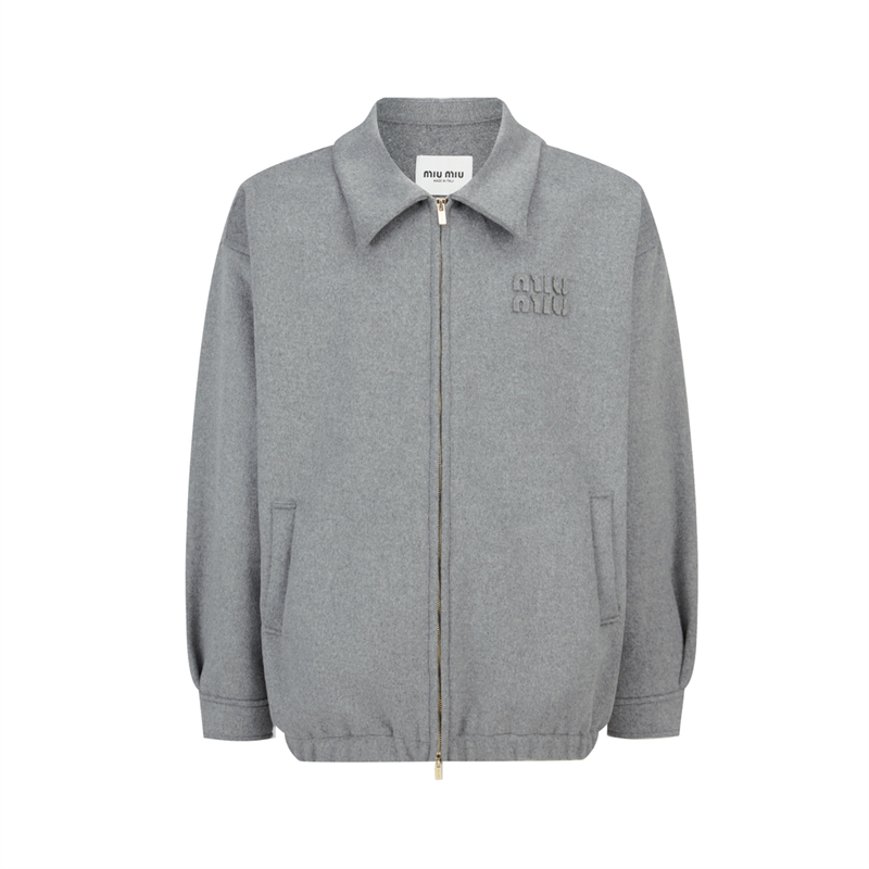 미우미우 로고 블루종 캐시미어 더블 자켓입니다. 고급스러운 소재와 실용적인 디자인으로 활용도 높습니다.