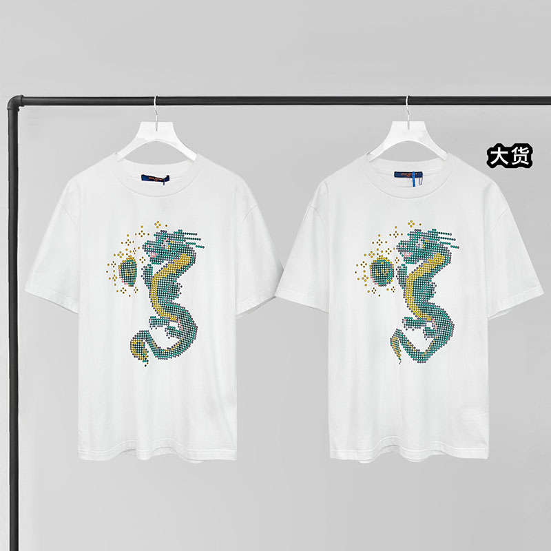 루이비통 드래곤 숏 슬리브드 코튼 티셔츠입니다. 편안한 착용감으로 일상에서 활용하기 좋습니다.