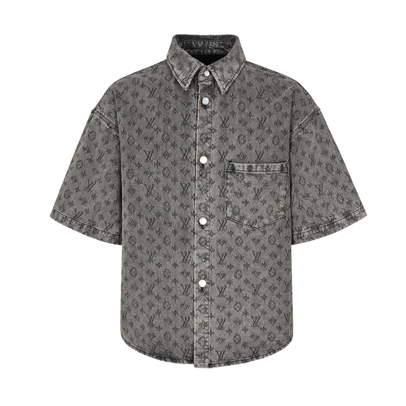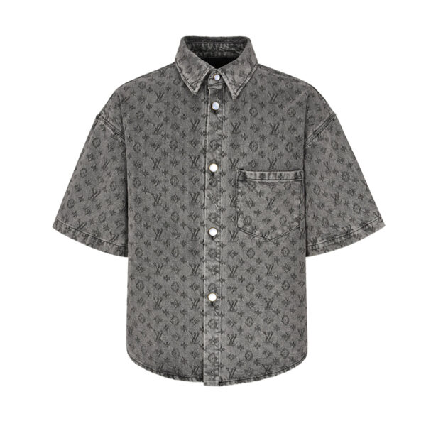 - 루이비통의 남성용 모노그램 데님 반팔 셔츠입니다.