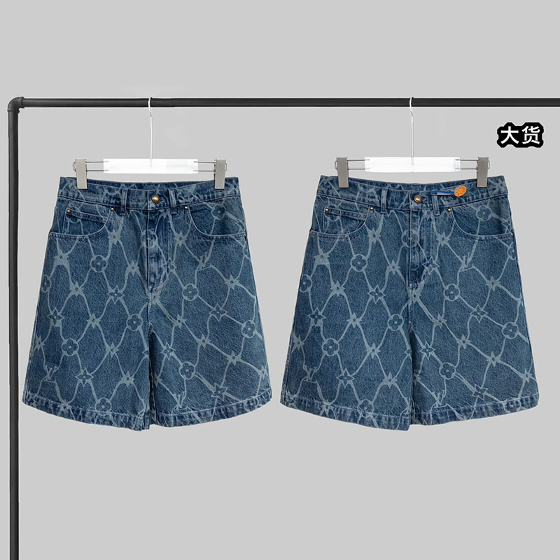 - 루이비통 브랜드의 모노그램 프린티드 데님 숏 팬츠로 디자인되었습니다.